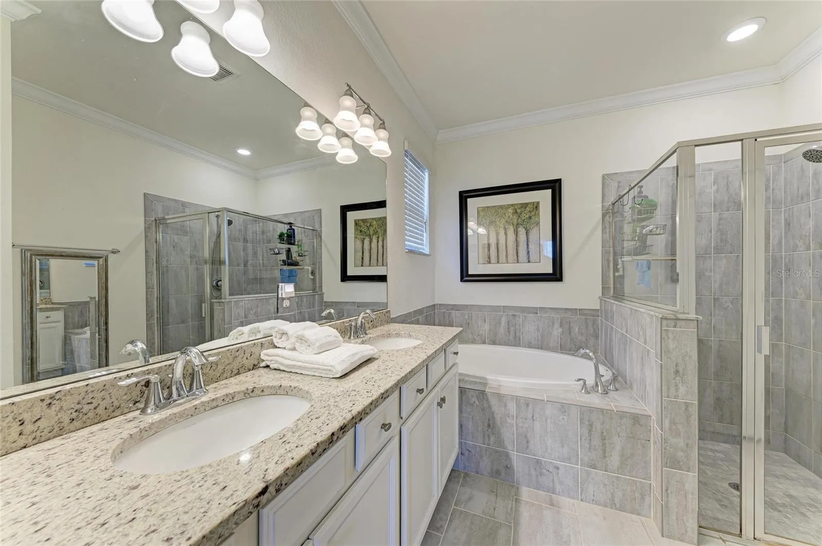 Experience effortless Florida living in this stunning Trevi floorplan at The Links at Rosedale Golf and Countr Club. BOASTING FOUR BEDROOMS AND 3 FULL BATHS across 2,032 sq. ft., this home offers a well-designed layout with a private primary suite featuring a spa-inspired bathroom. The open living and dining areas flow seamlessly, complemented by the 3 additional private bedrooms. Modern upgrades include elegant cabinetry, granite countertops in all baths, and expansive tile flooring throughout the main areas. Outside, the screened lanai overlooks serene water views, ideal for morning coffee or evening relaxation. The attached 2-car garage provides extra storage and convenience.