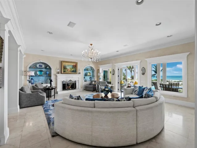 The ground level offers over 2,600 sq ft of flex space, ideal for a collector’s garage, home gym, or additional guest accommodations. Outdoors, the Gulf-front pool deck with summer kitchen invites year-round al fresco living, while a private path leads directly to one of Florida’s most pristine beaches.