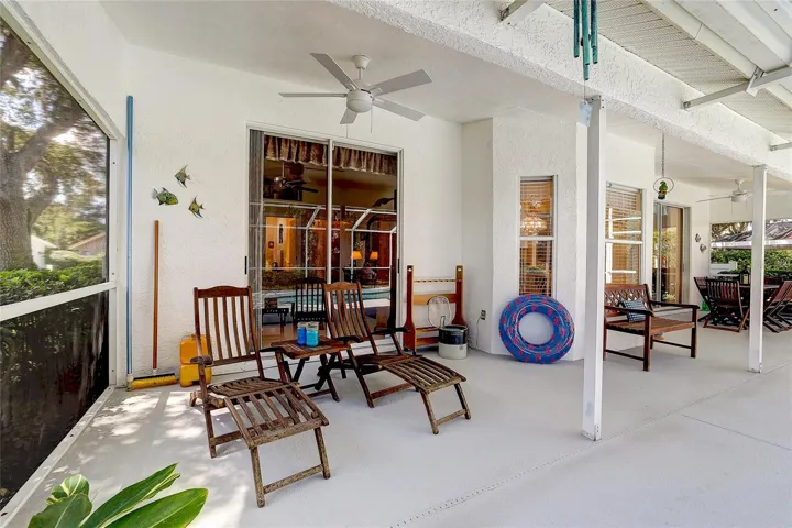 Outside, the heated pool sparkles beneath the Florida sun, recently rescreened and framed by a private, tree-lined backyard. It’s the kind of space that feels like your own personal retreat, morning coffee by the pool, quiet evenings listening to the breeze, or lively weekend get-togethers.