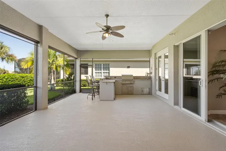 Nestled along the 2nd fairway behind the gates of The Venetian Golf & River Club, this 2,170-square-foot residence combines comfort, function, and Florida living at its finest. Designed with a desirable split floor plan, the home offers three bedrooms, two bathrooms, a formal dining room, Living room, family room and a well-appointed gas kitchen. Built in 2007 and filled with natural light, it is equipped with impact windows and doors throughout, ensuring both peace of mind and lasting value.Step outside to a spacious, covered lanai featuring an outdoor kitchen—perfect for entertaining, family time, or enjoying the tranquil fairway backdrop. The Venetian Golf & River Club is renowned for its lifestyle, embracing the motto “Where Living is an Art.” Residents enjoy resort-style amenities including a community pool, lap pool, tiki bar, private dining, championship golf, tennis, pickleball, a fitness center, and a full calendar of social activities designed to bring neighbors together. Centrally located, the community provides easy access to Gulf Coast beaches, The Legacy Trail, parks, fine dining, medical facilities, shopping, arts, theater, entertainment, and world-class fishing. Nearby destinations such as Venice, Wellen Park, Sarasota, and UTC are just a short drive away. Don’t miss the chance to make this exceptional property your next home—schedule your private tour with your Realtor today.
