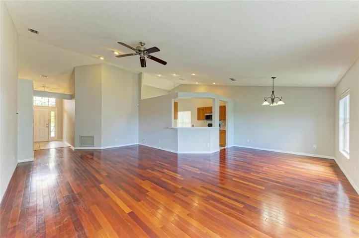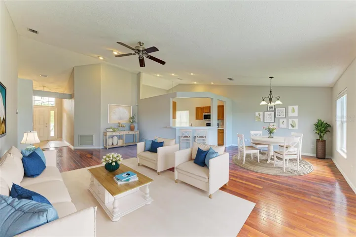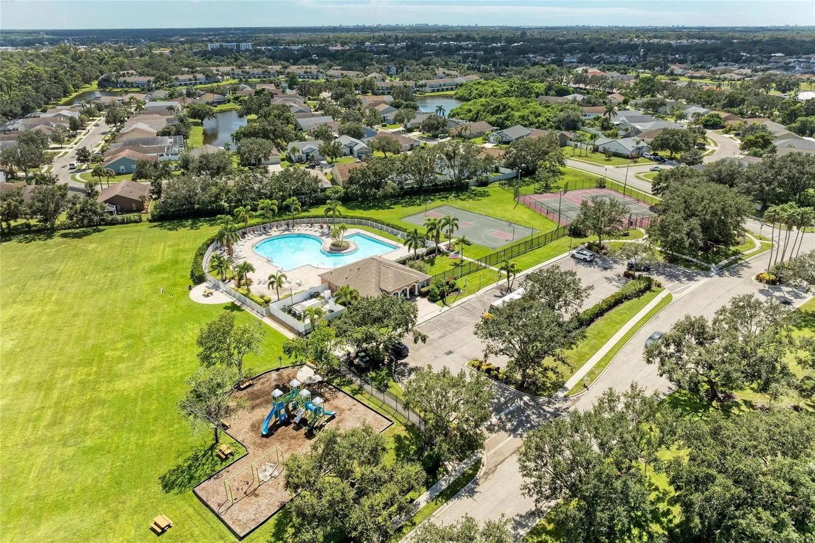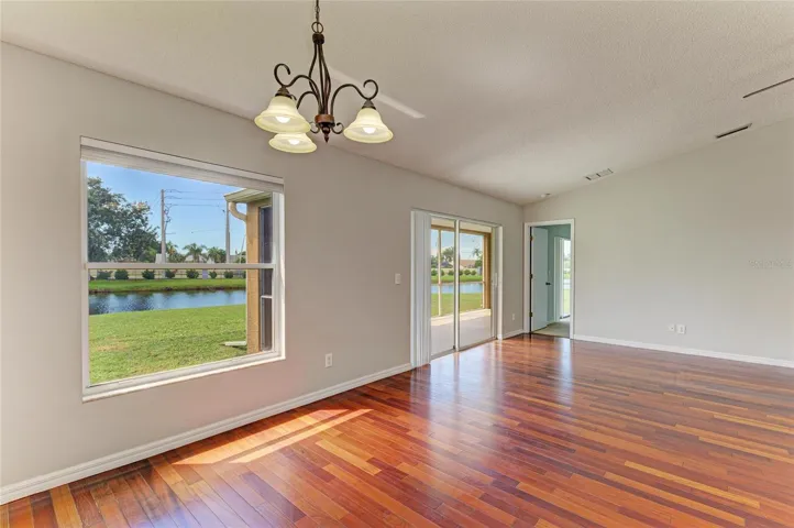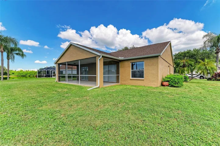 Nestled at the end of a quiet cul-de-sac, this 3-bedroom, 2-bath home sits on an oversized lot and has panoramic views of the lake, perfect for enjoying breathtaking sunsets. From the moment you arrive, you’ll notice the fresh exterior paint and the peace of mind that comes with a newer roof (2022). Inside, there are soaring cathedral ceilings, an open floor plan and rich Brazilian cherry hardwood floors. The kitchen seamlessly connects to the living and dining areas and features wood cabinetry, a pantry, new fridge and a cozy breakfast nook area. Expansive sliding doors perfectly frame the lake view and lead to a freshly painted, covered, screened-in lanai—ideal for dining al fresco, entertaining friends, or simply relaxing while soaking in the scenery.The primary suite is a retreat of its own, complete with high ceilings, sliding glass doors overlooking the lake, and a spacious en-suite bathroom. The bath includes a walk-in shower, granite vanity, separate water closet, linen storage, and a large walk-in closet. Two additional bedrooms and a full guest bath are located at the front of the home, offering comfort and privacy for family or guests. Additional highlights include fresh interior paint and a laundry space within the newly painted garage. Just a short stroll away, the resort-style amenity center offers a luxurious pool, basketball and tennis courts, pickleball, sports fields, and a new playground—all for an incredibly low HOA fee of just $69 per month. Sabal Harbour is one of the area’s most sought-after communities for its central location and lifestyle offerings. You’ll enjoy easy access to shopping, UTC Mall, waterfront dining, I-75, downtown Sarasota, and the world-class beaches of Anna Maria Island. If you’ve been searching for a peaceful neighborhood with impressive amenities and an unbeatable location, look no further—welcome to 4506 Cabbage Key Terrace and let your Florida dreams begin!