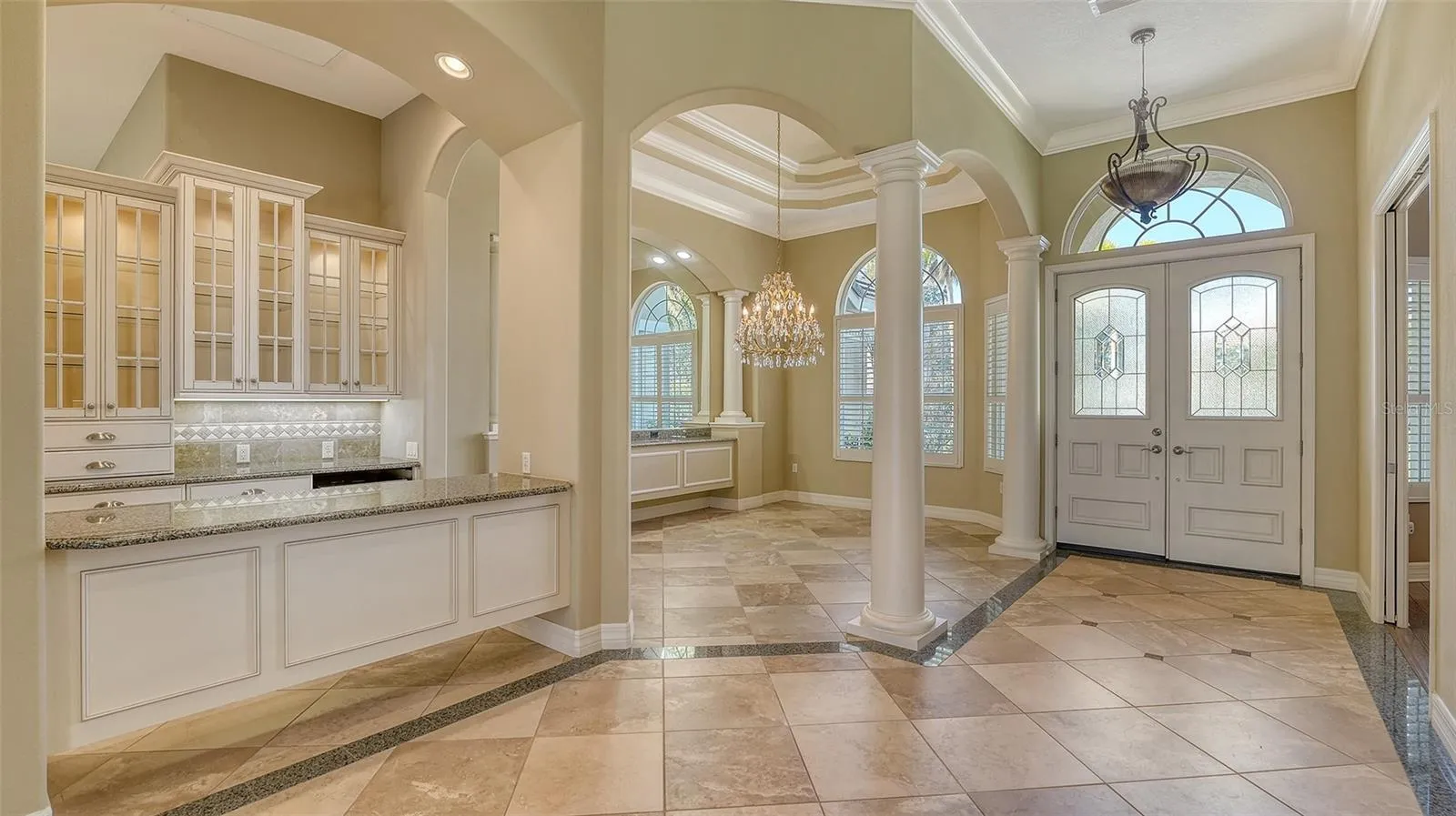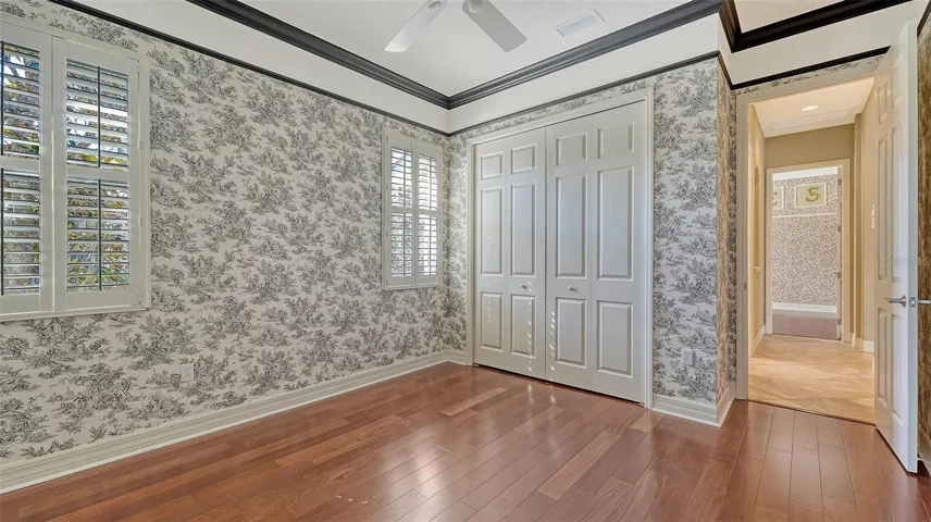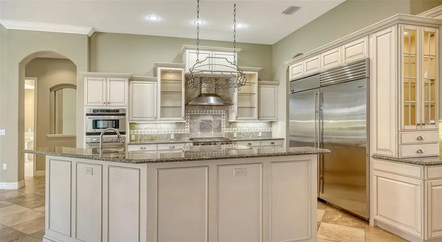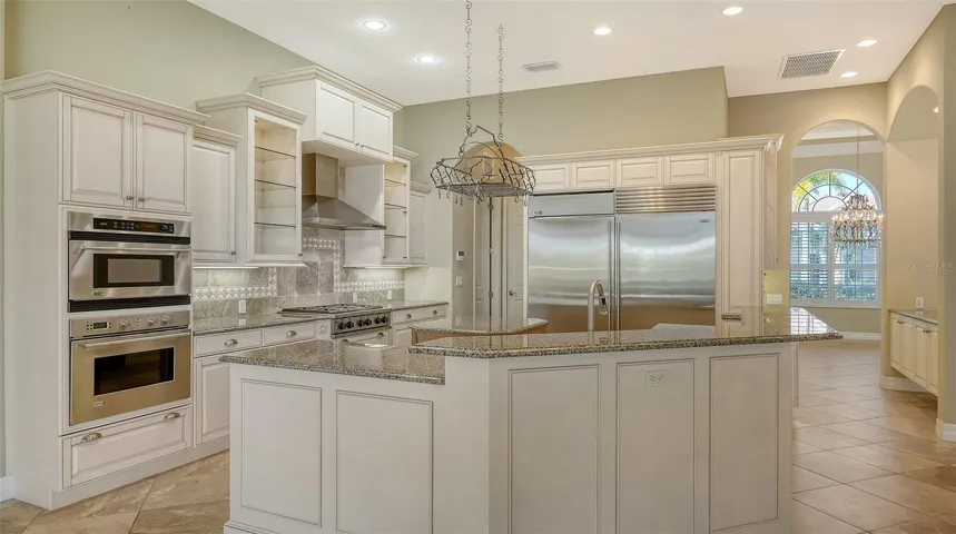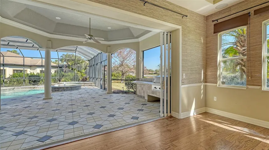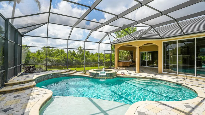 Brand new beautiful flat tile roof has been installed (May 2025). In the sought-after Legends Walk neighborhood of the prestigious Lakewood Ranch Golf and Country Club, this former Peregrine model home offers just under 3,800 square feet of casual elegance and provides the ideal country club and Lakewood Ranch lifestyle. The Neo-Classical style elevation with its lush landscaping and a brick paver circular driveway provides a welcoming curb appeal. Upon entering its bright, open and spacious Hampton floor plan with soaring ceilings, you are immediately captured by its charm. This gem offers three bedrooms, three full and one half-bath, a three-car 23-by-28-foot garage, an office/study that boasts built-in book shelves and a desk, a bonus/flex room in the rear of the home affording serene lake and preserve views, a formal living room with a granite and stone-facing fireplace, a formal dining room, a family gathering room in the heart of the home with tall sliders opening to the pool for inside and outside blending, and a gourmet chef’s delight kitchen with maple raised panel white cabinets, a 36-inch Sub-Zero refrigerator and 36-inch freezer, a double wall oven with Advantium convection, conventional and microwave cooking options, a walk-in pantry, stainless steel appliances and a distinctive center island with 1.25-inch neutral granite counter tops. Accents throughout the home include 20-by-20-inch porcelain tiles, custom wood flooring in the bonus room and the office, wood flooring in the bedrooms, detailed architectural appointments, crown molding, plantation shutters, designer lighting fixtures, decorative ceiling fans and high ceilings with even higher tray ceilings making the rooms feel even larger. Other features include a new water heater in 2024, two air-conditioning units with one replaced in 2022, a wet bar between the kitchen and dining room with glass display cabinetry and a wine refrigerator, a fenced dog run, tall sliders which provide seamless access to the expansive outdoor private retreat that offers a heated pool and spa, a built-in GE Monogram grill, a stone fireplace, and extensive open and undercover spaces all overlooking a private and peaceful lake with a preserve setting behind it. The owner’s retreat has its private wing with a door to the lanai, two California customized walk-in closets, dual sinks, and features a luxurious spa-like bath with an opulent Roman tub area with a marble deck. Lakewood Ranch Golf and Country Club offers non-mandatory memberships at different amenity levels including four 18-hole championship courses, tennis, pickleball, fine and casual dining, two restaurants, a clubhouse, fitness center and lap pool. Close to shopping, restaurants, public golfing, cultural venues of Sarasota and its award-winning beaches. This home is a must-see!
