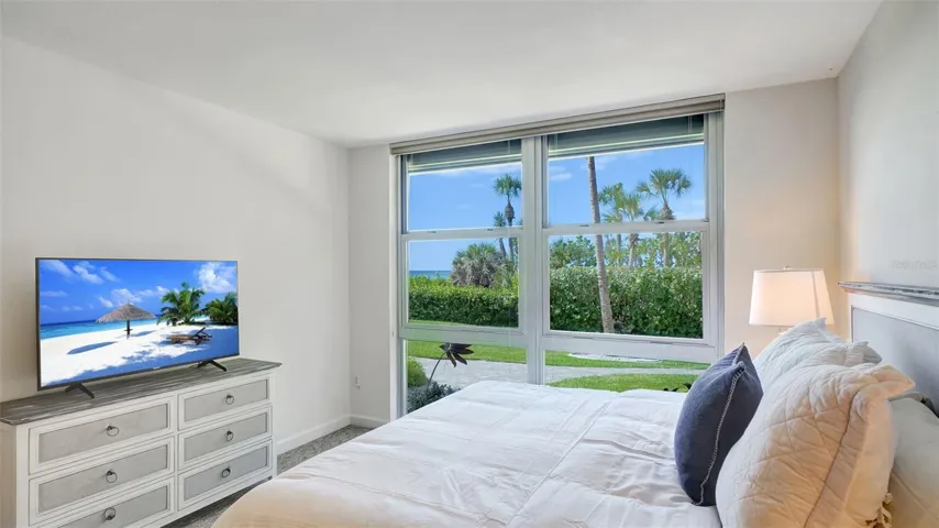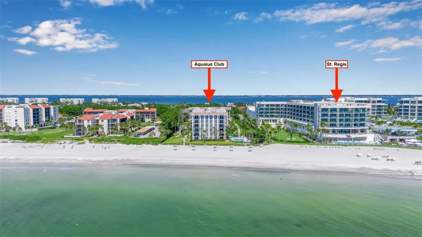 Own the ultimate beachfront retreat on the coveted south end of Longboat Key—where your residence comes with a complimentary membership at the brand-new St. Regis Resort next door. Beautifully updated and fully furnished, this rare ground-floor walkout at the direct Gulf-front Aquarius Club offers effortless access to the beach and all the luxuries of coastal living. The 2-bedroom, 2-bath residence showcases soaring 9-foot ceilings, an open kitchen, and expansive living areas with floor-to-ceiling hurricane-impact windows and sliders framing stunning Gulf and Bay views from every room. Situated just one unit from the sand on the north side of the building, this home is perfectly positioned for spectacular sunsets—whether enjoyed from your private balcony or with your feet in the surf just steps away. The Aquarius Club, an intimate community of only 58 residences, has recently completed extensive renovations led by the famed JKL Design Group, elevating the property’s hallways, club room, fitness center, and conference room. Amenities include onsite management, a heated Gulf-front pool, Har-Tru tennis and pickleball courts, fitness center, and covered parking. The association is financially strong and well-managed, ensuring lasting value. As an Aquarius Club owner, you’ll also enjoy a complimentary social membership to the St. Regis Resort, offering access to its luxury pool, spa, fitness center, and exclusive hotel discounts—an unparalleled benefit unique to this community. Conveniently located near Bay Isles shopping, St. Armands Circle, and Downtown Sarasota’s cultural attractions, this property is ideal for those seeking a beachfront escape or a smart investment opportunity.