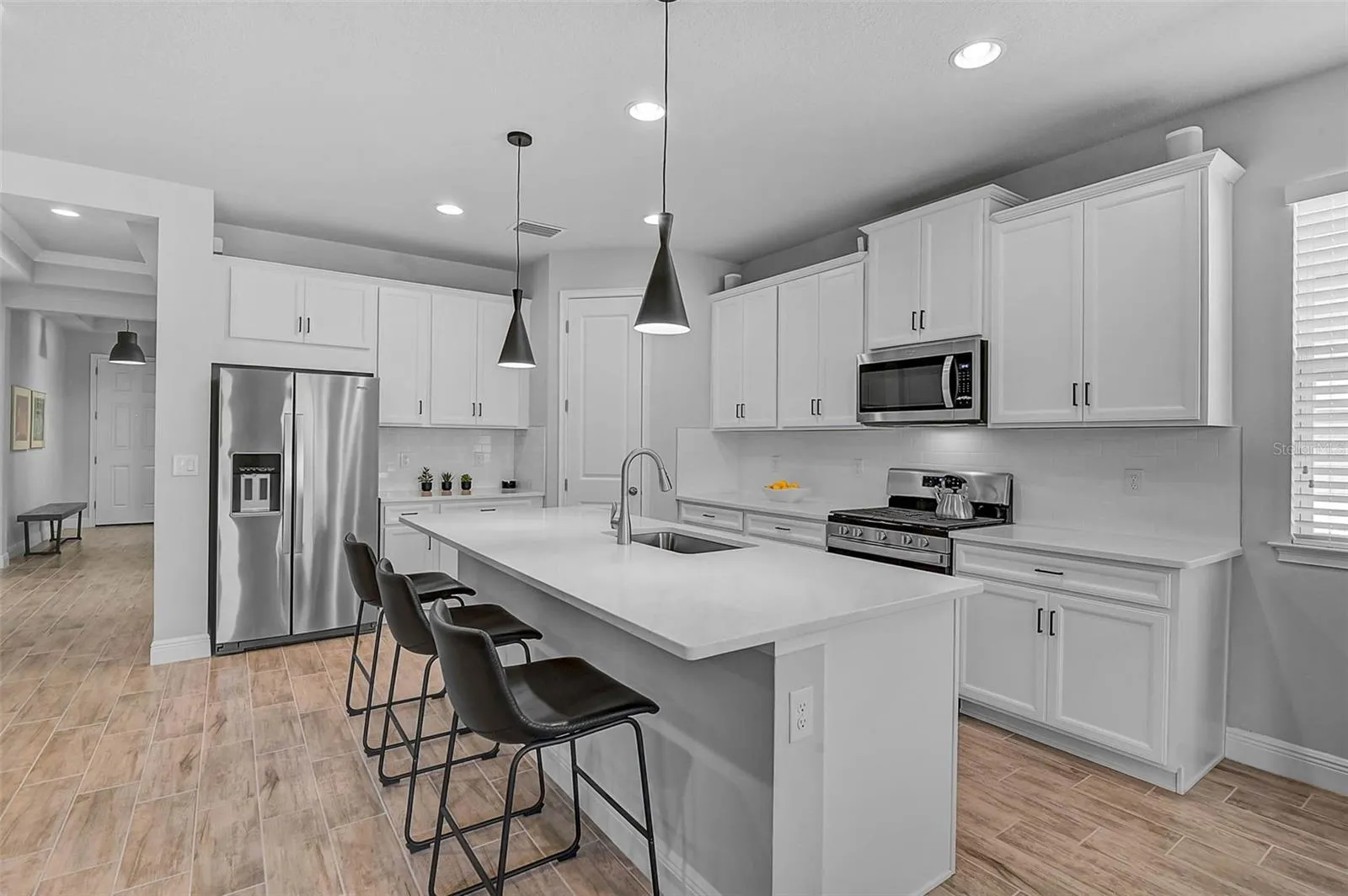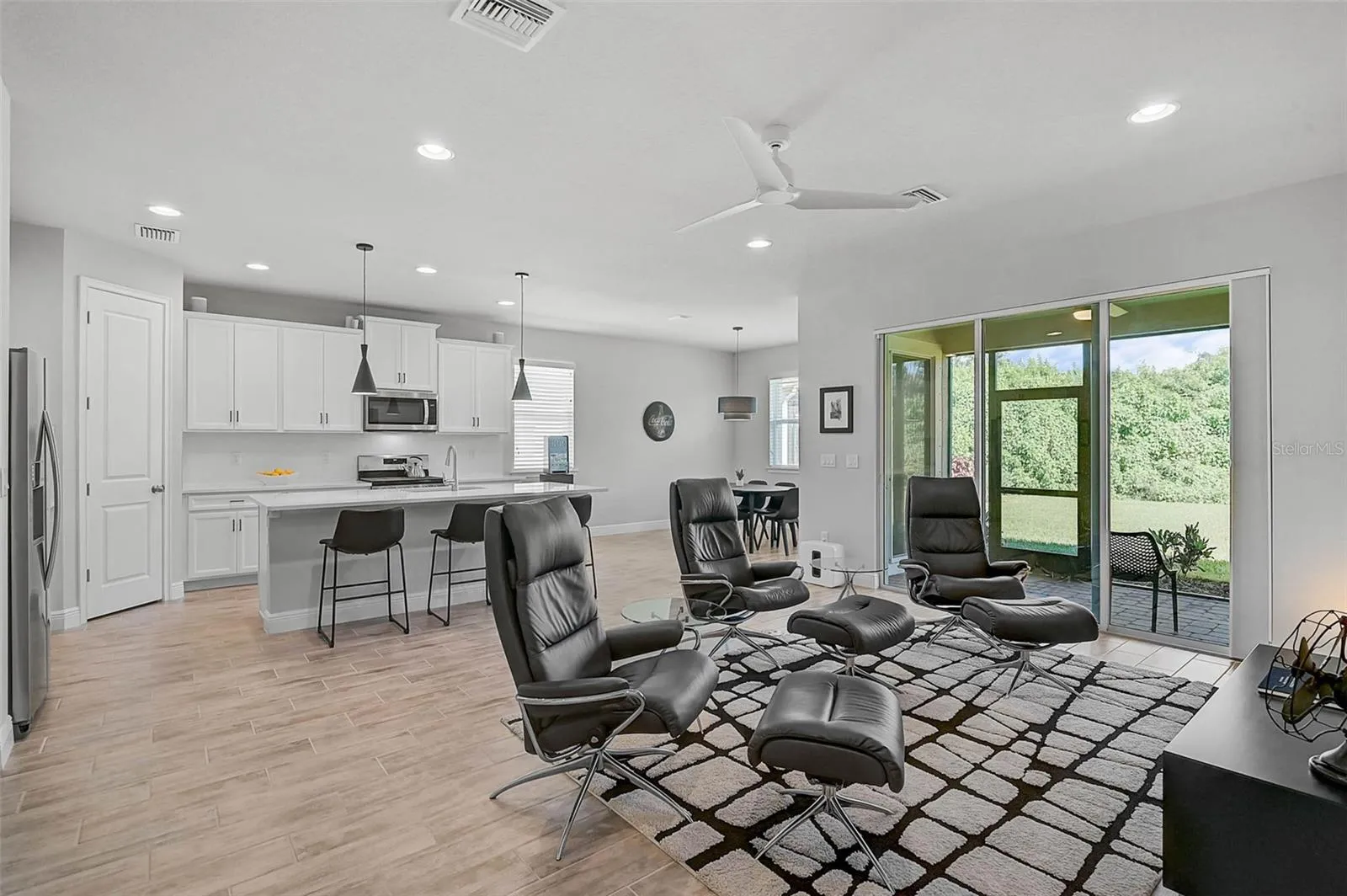 Unmatched offering in Palmer Ranch! Built in 2021, this stylish home showcases luxury finishes, a versatile open layout, and resort-style amenities. Inside, you’ll find 2 bedrooms, 2 baths, plus a den that easily doubles as a third bedroom or office. Porcelain tile flows throughout, and the chef’s kitchen stands out with a natural gas range, quartz countertops, stainless appliances, abundant cabinetry, and a spacious island, ideal for entertaining. The primary suite includes a walk-in closet with built-ins, dual vanities, a large shower, and private water closet. Additional upgrades such as custom lighting, enhanced landscaping, and an epoxy-coated garage floor add lasting appeal. Outdoor living is effortless with a screened lanai, equipped with a natural gas hookup, overlooking private green space with room to add a pool, garden, or play area. Practical features make this home even more desirable: a concrete tile roof, upgraded hurricane shutters and hurricane patio screen, X flood zone location, no CDD fees, and a low-maintenance HOA that covers lawn care and irrigation, delivering long-term durability and financial peace of mind. As part of Sunrise Preserve, residents enjoy access to a zero-entry pool, clubhouse, fitness center, tennis, bocce, pickleball, and fire pit, all just minutes from Sarasota’s world-class beaches, shopping, dining, and medical services.