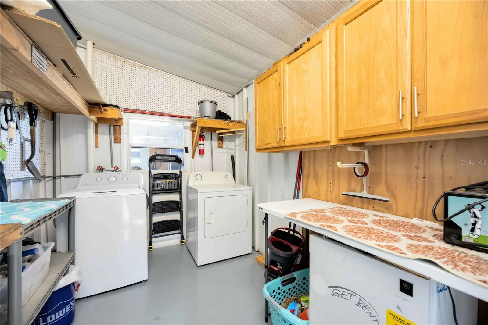 Major updates provide lasting peace of mind, including a new roof and carport, new air conditioning, water heater, and electric panel installed in 2022, along with new ductwork, a new vapor barrier, and new interior windows with a lifetime warranty in 2025. A transferable pest control plan is in place until April of next year. Two large sheds, one set up as a laundry area and the other a double-door storage shed for your golf cart, add even more convenience.