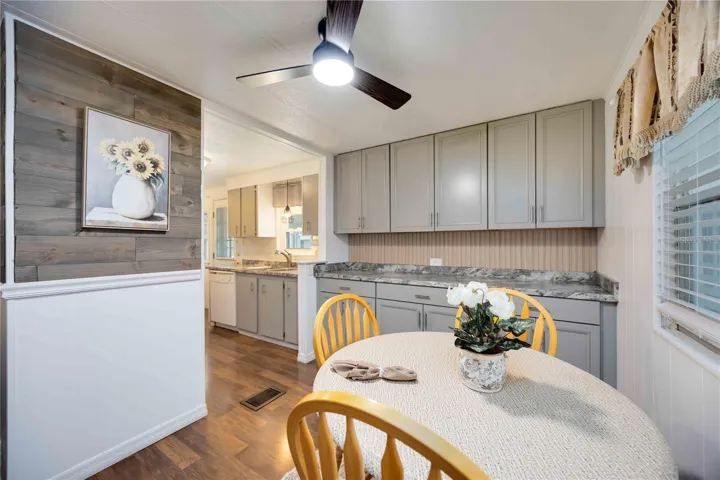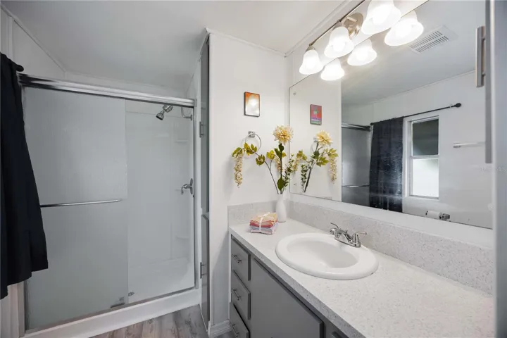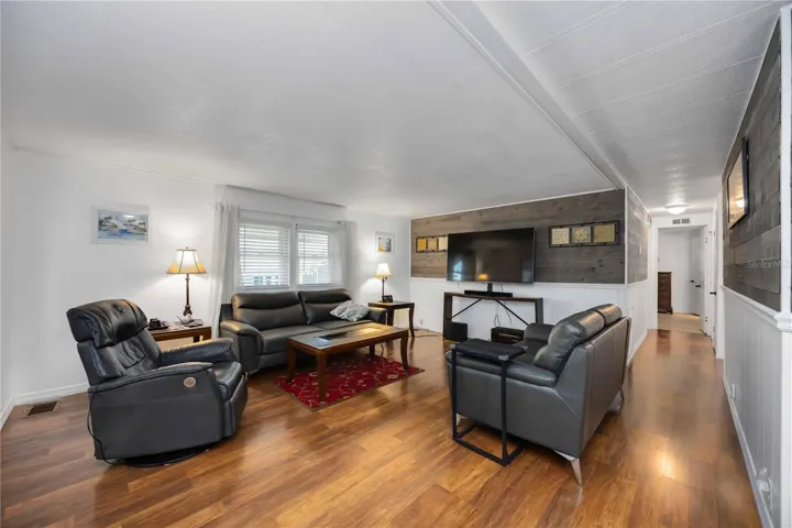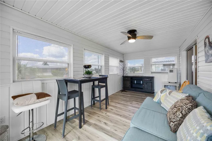 Step into this beautifully updated two-bedroom, two-bath manufactured home located in the desirable Harbor Isles 55+ community. With sleek laminate floors, updated countertops, tiled showers in both bathrooms, and new luxury vinyl flooring in the bedrooms, this home offers a fresh, modern feel throughout. The spacious Florida room adds extra living space, perfect for relaxing with neighbors or hosting family visits.