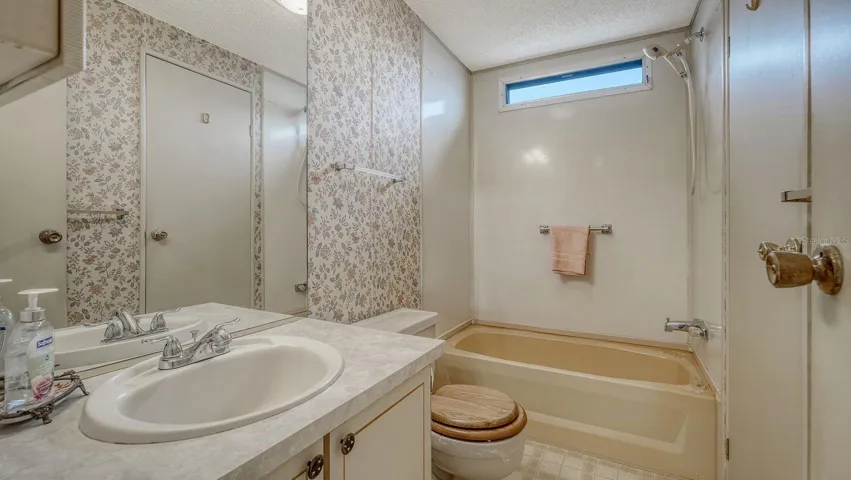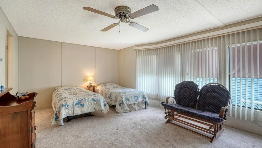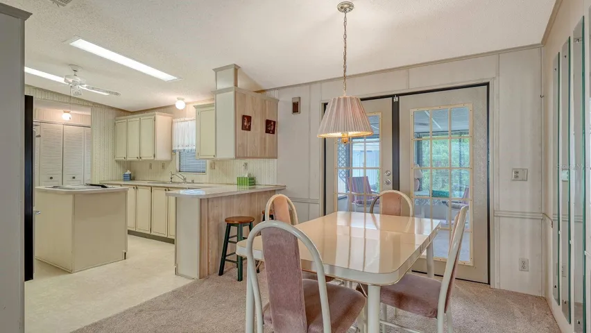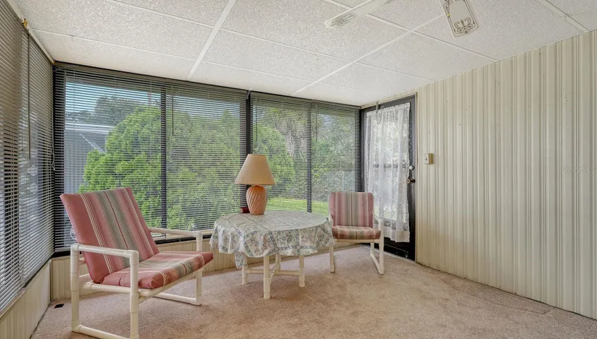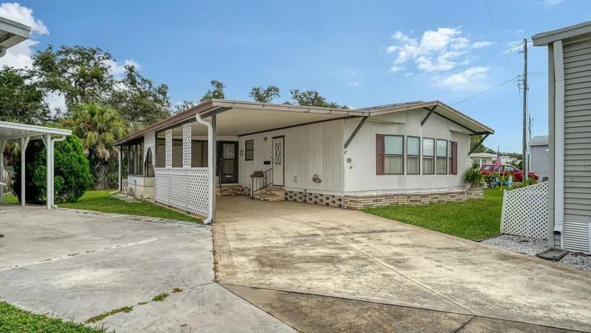 Welcome to this hidden gem in sought-after South Winds MHP that is a 55+ community! This mobile home is turnkey & tucked on a very private lot that backs to a quiet, wooded subdivision in the back and away from the traffic. This home is spacious and comfortable with vaulted ceilings and has 1,212 sq ft under air (1,847 gross sq ft). Open & Airy Floorplan that offers a Split Plan with 2 Bedroom Suites with large walk-in-closets. The huge kitchen also has a laundry closet with a washer/dryer and there is a Living Room, Dining Room and French Doors that open into a Florida Room that steps down to a private patio in the back. It is ready for you and affordable living! Conveniently located near amenities and facilities which include a community pool, shuffleboard courts, pickle ball court, bocce court, horseshoe pits, putting green, picnic area, pool room, library and a recreation hall. This park is well managed and maintains the grounds beautifully! Being Sold as-is with the right to inspect. Application to be completed immediately after contract (stop by the office to obtain) & it must be approved by the HOA. The price includes “1 Share” in this co-op. Fees include: Cable TV*Heated Community Pool*Lawn Maintenance*Water & Sewer. This mobile home has been family owned for years and is well maintained: A/C ’17*Roof sealed & secured w/screws ’17*Washer ’19*Blinds ’20 & ’23*Water Heater ’22*Gutter/Downspouts ’24*Thermostat ’24 & More. Spacious Carport for Parking & a Storage Shed in the back off of the patio for extra storage. The location is unbeatable, for it is within a short proximity to one of the top-rated beaches in the country: Siesta Key Beach! Perfect for a seasonal home or make it your full-time residence. The Gulf Gate shops/restaurants are 3 minutes away, cultural downtown Sarasota 20 minutes away as well as the UTC Mall. You’ll love the location of this private lot … hurry and view it today! This is the one for you!
