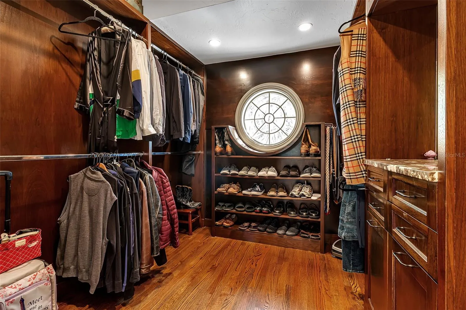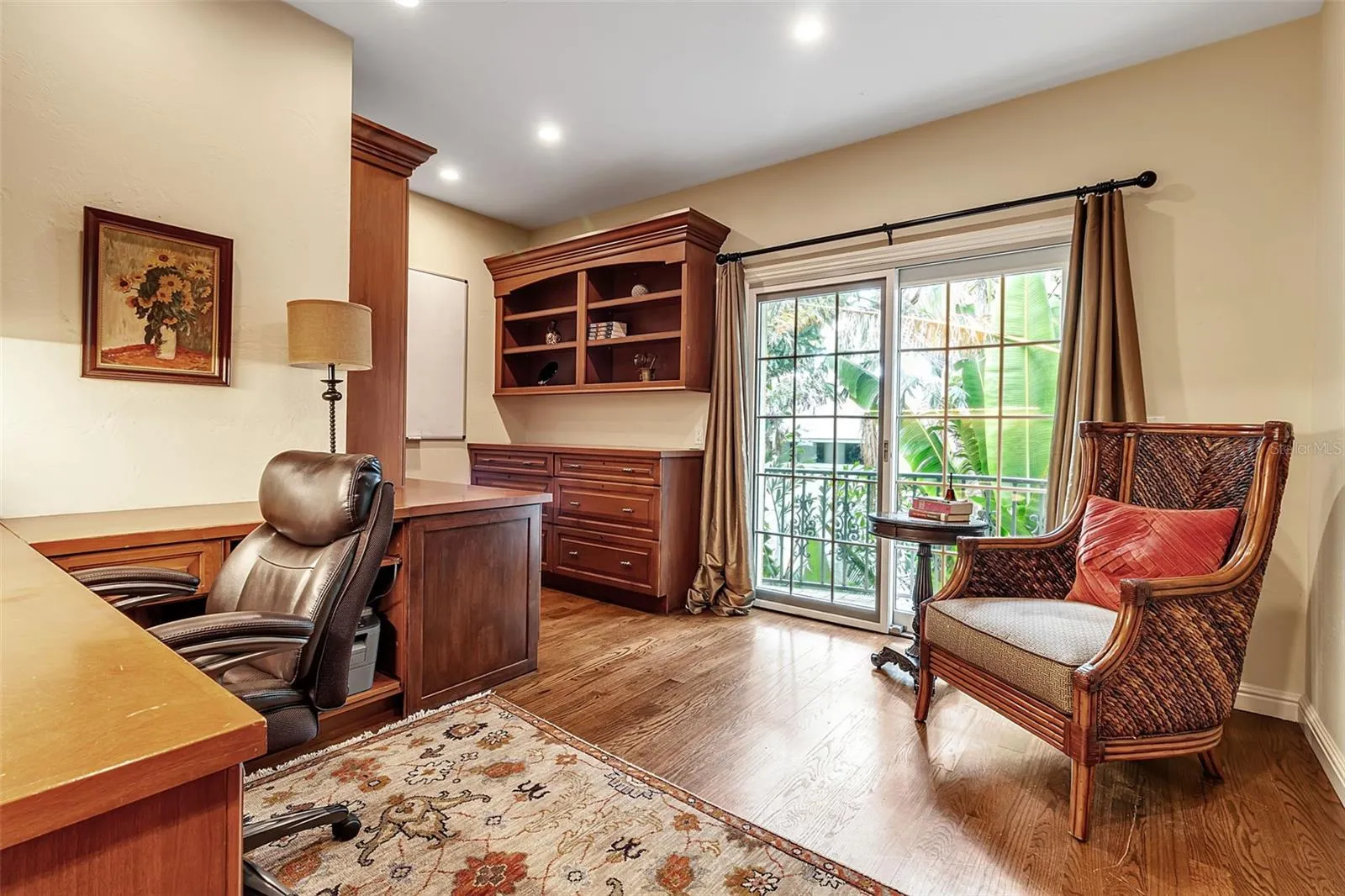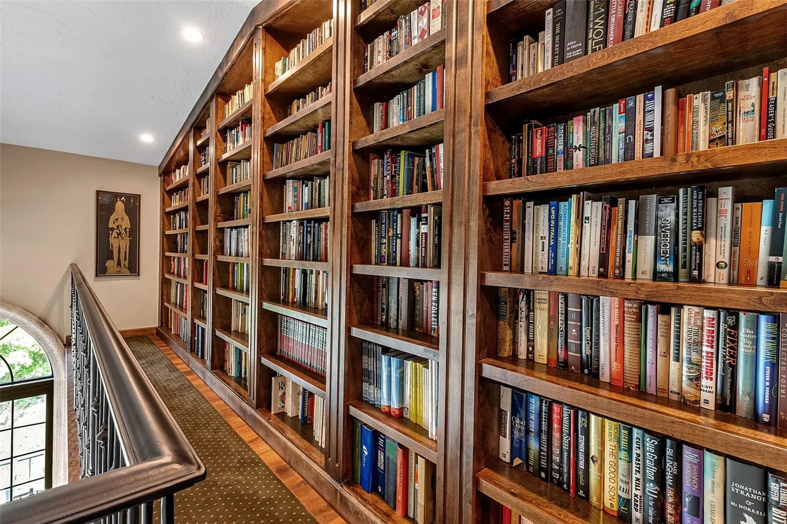 This residence spans 6,827?sq.?ft of air-conditioned living space offering 4 bedrooms, 4 full baths, and 1 half bath. At the heart of the home is the great room, soaring to 20-foot ceilings, commanding sweeping water views, and anchored by a two-story library wall. A gallery and loft overlook the formal dining space, and elegant iron railings and hand-hewn wood trestles bring an artisanal, Old World feel. A hidden wood-paneled staircase adds a dramatic, secretive touch.