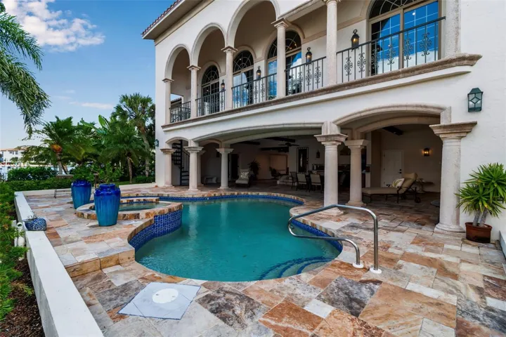 Designed for entertaining and coastal living, the property features a heated/in-ground gunite pool with spa, a sizable lanai with kitchen and multiple alfresco seating areas. For boating enthusiasts, the dock features three lifts and docking for large vessels.