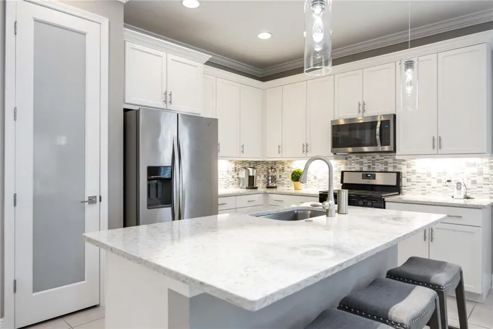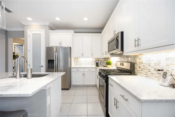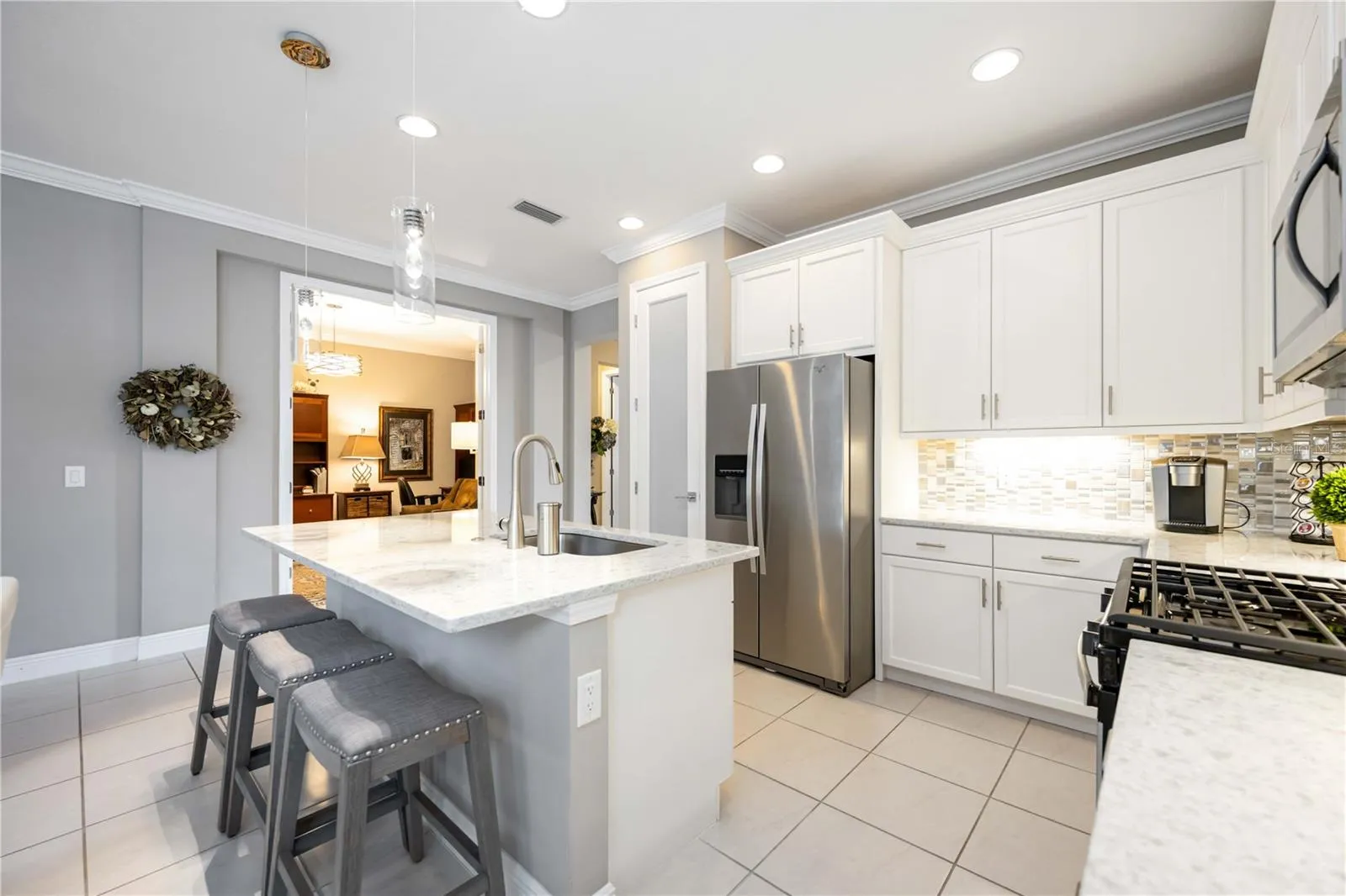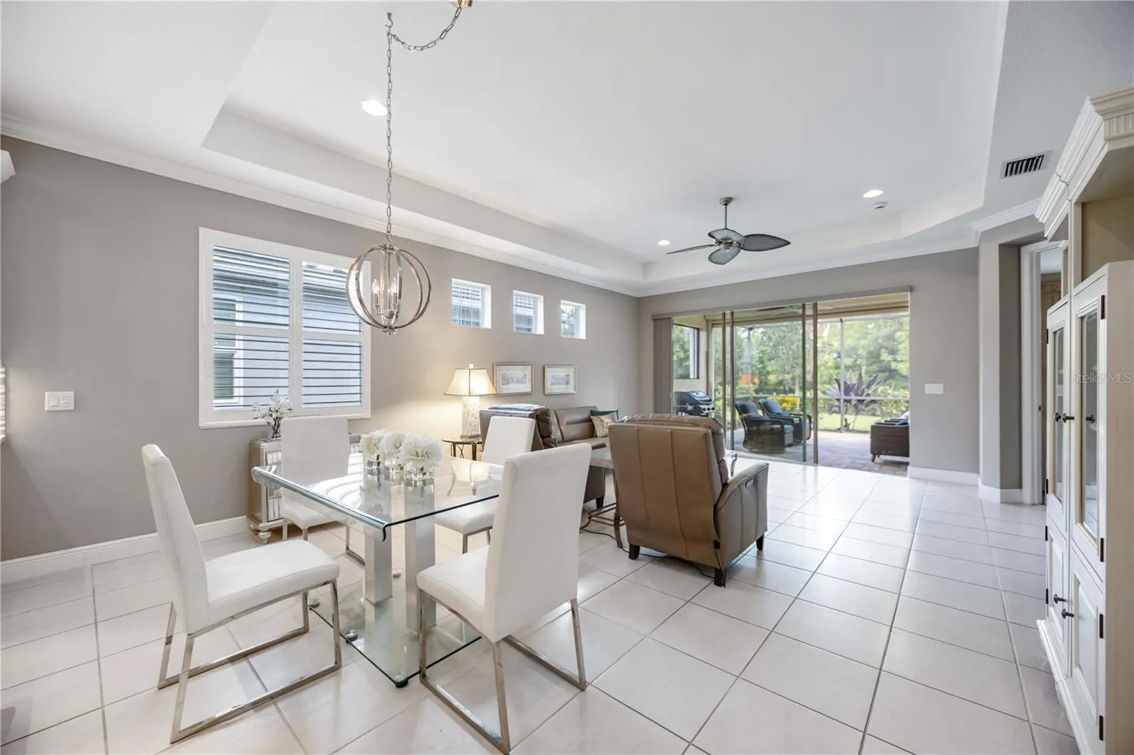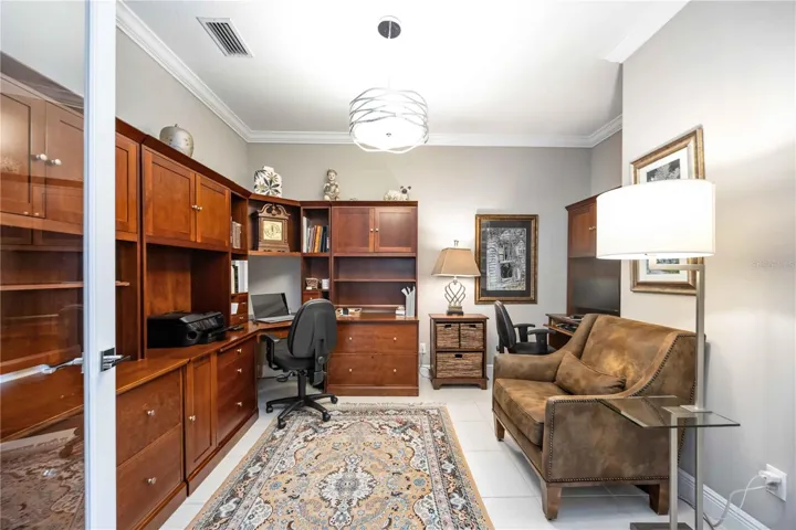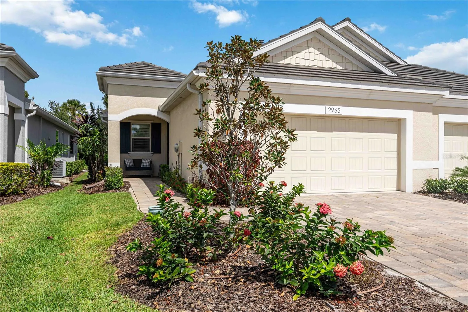Designer touches throughout include plantation shutters, crown molding in all living areas, and 5 ¼” baseboards. Additional upgrades include a tile roof, paver driveway, and lush, well-maintained landscaping.