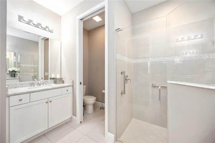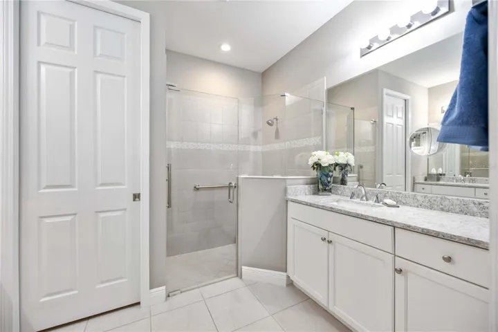 The luxurious primary suite overlooks the tranquil preserve and features dual walk-in closets, separate vanities, and an oversized walk-in shower.