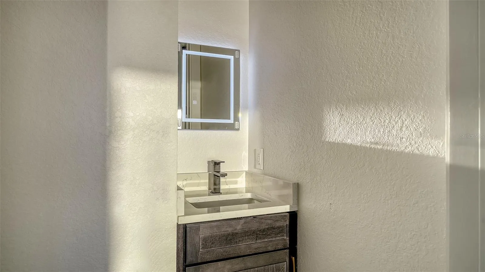 The second-floor primary suite offers a tranquil retreat, complete with a private balcony for sunrise views, a spacious walk-in closet, and a spa-inspired ensuite featuring quartz finishes, a glass-enclosed shower, and backlit mirrors. Two additional bedrooms share a beautifully appointed full bath, and a laundry closet provides everyday convenience.