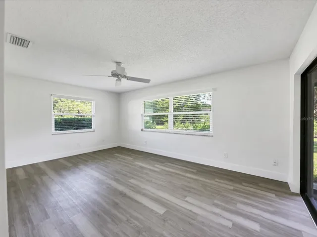 One or more photo(s) has been virtually staged. COMPLETELY UPDATED VILLA AVAILABLE FOR ANNUAL LEASE. LIGHT & BRIGHT, OPEN & AIRY TWO BEDROOMS PLUS DEN OR OFFICE FLEX SPACE. 2000 Sq/ft Living area with Luxury Vinyl Plank flooring throughout. Shows like New! Recently Painted in & out, Granite Counters, Soft-close Cabinets, Updated Lighting, All new SS Appliances. Spacious, air conditioned, Tiled Lanai with Glass sliding doors & New View screening and Greenspace views! Primary Bedroom with Ensuite Bathroom, Dual Closets & Access to the Flex Space, which also opens to the Lanai. All on One Floor, no Stairs. 2 Car Attached Garage with new Epoxy floor. Courtyard entrance for additional lounge space. This Villa sits on a Cul-de-Sac which has a Lovely Park in the middle. Community Pool & Clubhouse area nearby, and its Heated in the Winter. Lawn care & Cable TV, Internet are included in the Rent. Palm Aire Country Club has Memberships available for Golf, Tennis, Pickleball, Pool, Fitness & social Dining. UTC Mall, Benderson Lake Park, Shopping & tons of Restaurants nearby. I75 a few miles East & SRQ Airport a few miles West. Sorry, no pets.