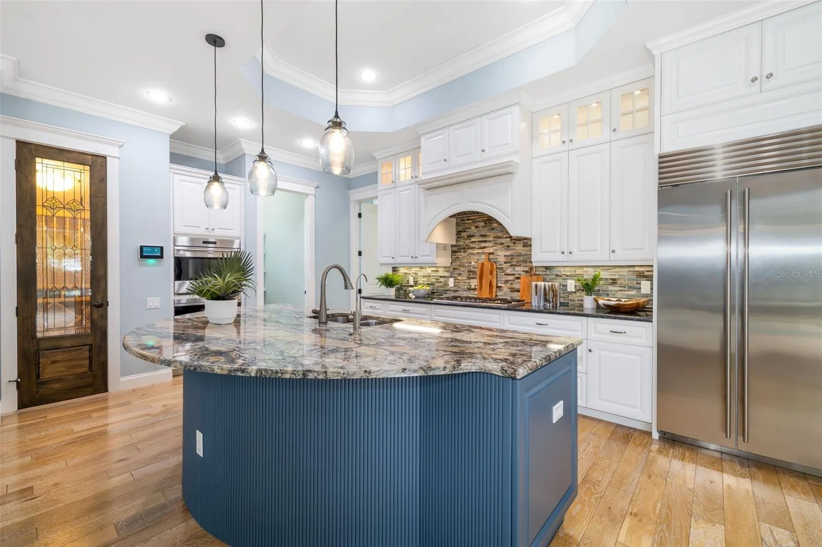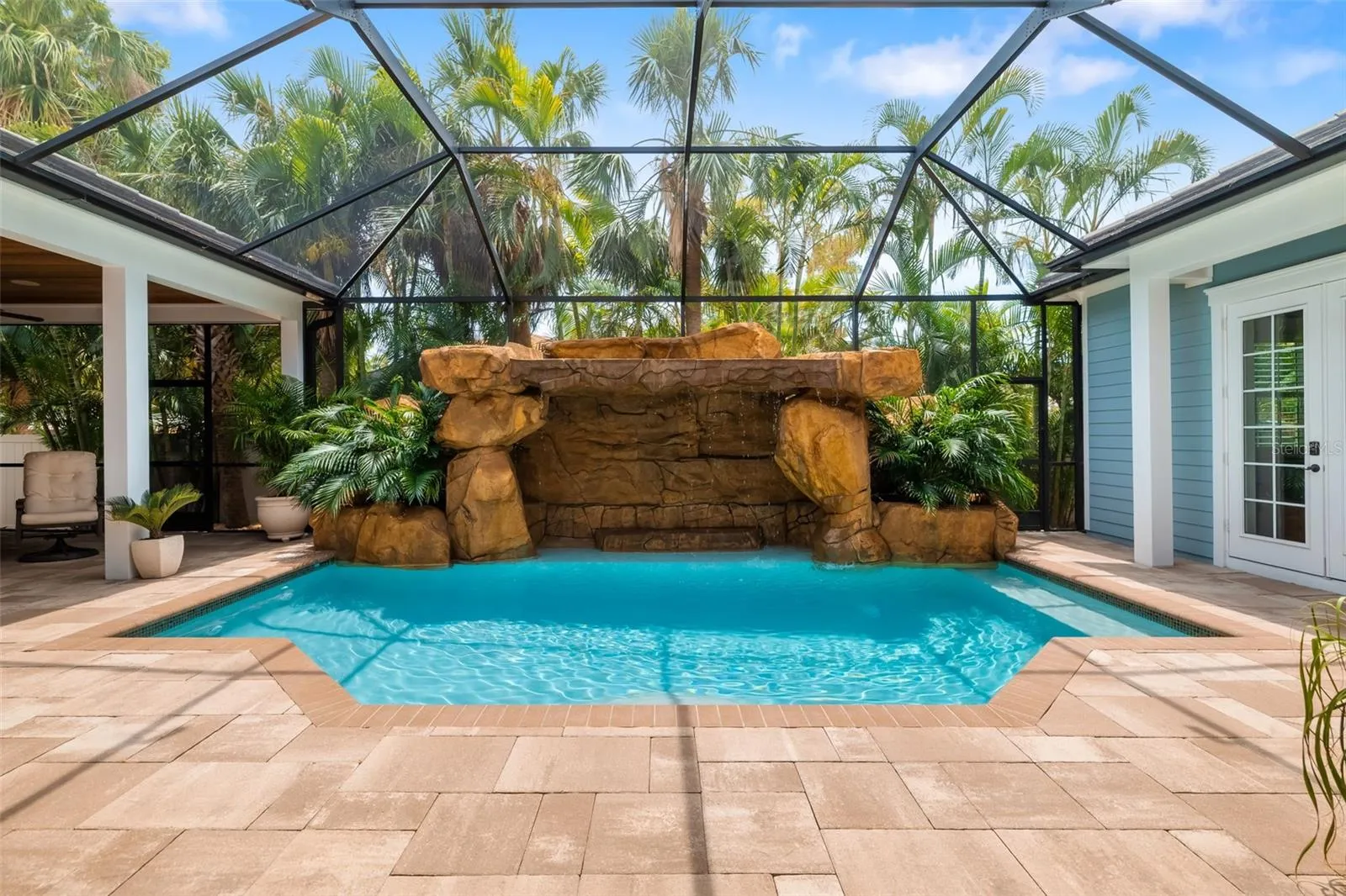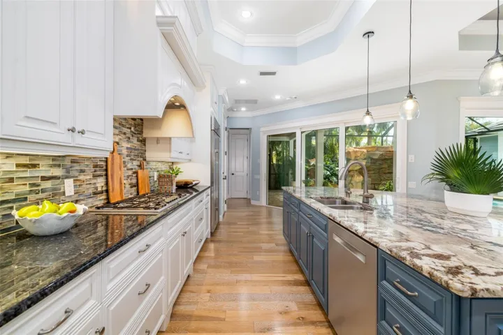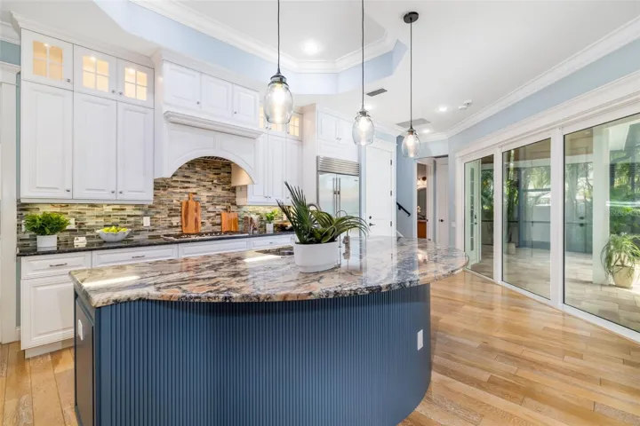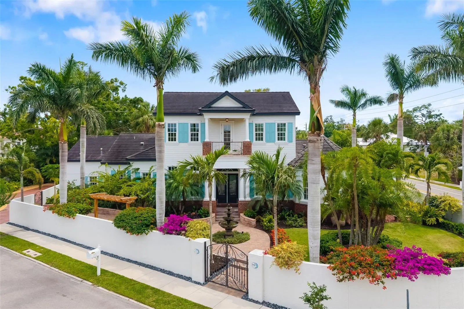 Discover a rare blend of architectural integrity, walkable convenience and low-maintenance privacy in Sarasota’s coveted West of Trail neighborhood, Avondale, just moments from downtown, Bayfront Park and Southside Village. Situated on a corner lot for easy access yet engineered for peace, this solid block-constructed home with impact-rated windows, a privacy wall and exceptional sound insulation lives remarkably quiet once inside the gates. Professionally designed landscaping and elegant landscape lighting create a welcoming ambiance both day and night. The layout is ideal for single-level living, with the primary suite, main gathering areas, and a designated private office all on the ground floor, while upstairs offers ensuite guest rooms and flexible bonus space for visiting family, hobbies or fitness needs. Designed for serious cooks and relaxed entertainers, the chef’s kitchen features Sub-Zero, Wolf, Thermador, and Bosch appliances, custom cabinetry and a generous island, complemented by a dedicated bar area and a temperature-controlled 450-bottle wine cellar. Sliding doors open to an outdoor living area built for year-round enjoyment, including a heated saltwater pool enhanced by the soothing sound of a cascading waterfall, a screened lanai and a fully equipped summer kitchen with a granite bar. Additional features include a Kohler whole-house generator, tankless gas water heater, a three-car side-entry garage with storage and epoxy flooring, and full property enclosure for security and ease of lock-and-leave living. For those seeking location without compromise, privacy without isolation and luxury without upkeep, this Avondale residence delivers the best of Sarasota living in one exceptional package.