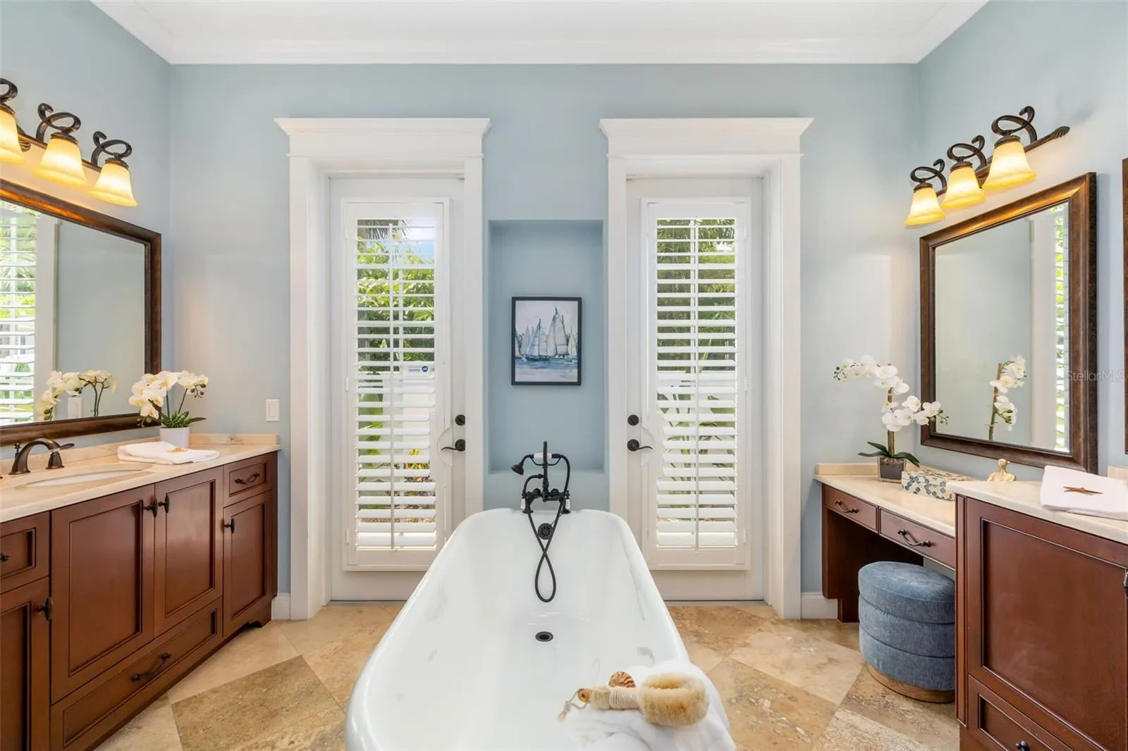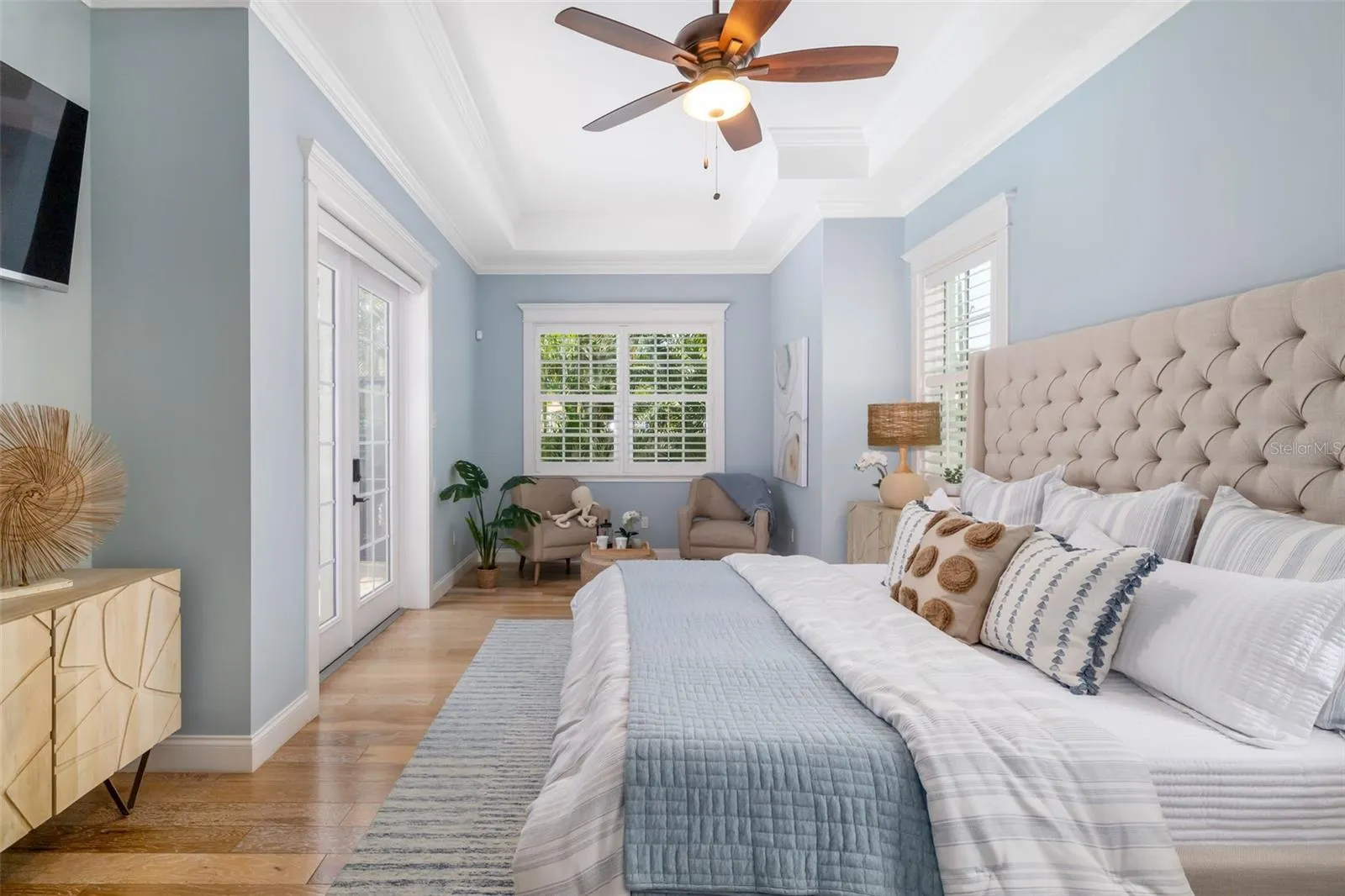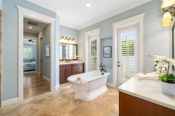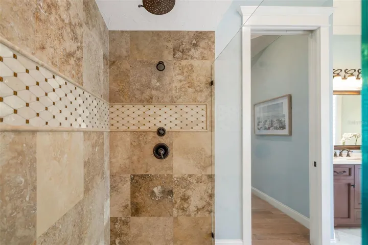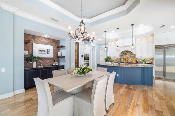 Discover a rare blend of architectural integrity, walkable convenience and low-maintenance privacy in Sarasota’s coveted West of Trail neighborhood, Avondale, just moments from downtown, Bayfront Park and Southside Village. Situated on a corner lot for easy access yet engineered for peace, this solid block-constructed home with impact-rated windows, a privacy wall and exceptional sound insulation lives remarkably quiet once inside the gates. Professionally designed landscaping and elegant landscape lighting create a welcoming ambiance both day and night. The layout is ideal for single-level living, with the primary suite, main gathering areas, and a designated private office all on the ground floor, while upstairs offers ensuite guest rooms and flexible bonus space for visiting family, hobbies or fitness needs. Designed for serious cooks and relaxed entertainers, the chef’s kitchen features Sub-Zero, Wolf, Thermador, and Bosch appliances, custom cabinetry and a generous island, complemented by a dedicated bar area and a temperature-controlled 450-bottle wine cellar. Sliding doors open to an outdoor living area built for year-round enjoyment, including a heated saltwater pool enhanced by the soothing sound of a cascading waterfall, a screened lanai and a fully equipped summer kitchen with a granite bar. Additional features include a Kohler whole-house generator, tankless gas water heater, a three-car side-entry garage with storage and epoxy flooring, and full property enclosure for security and ease of lock-and-leave living. For those seeking location without compromise, privacy without isolation and luxury without upkeep, this Avondale residence delivers the best of Sarasota living in one exceptional package.
