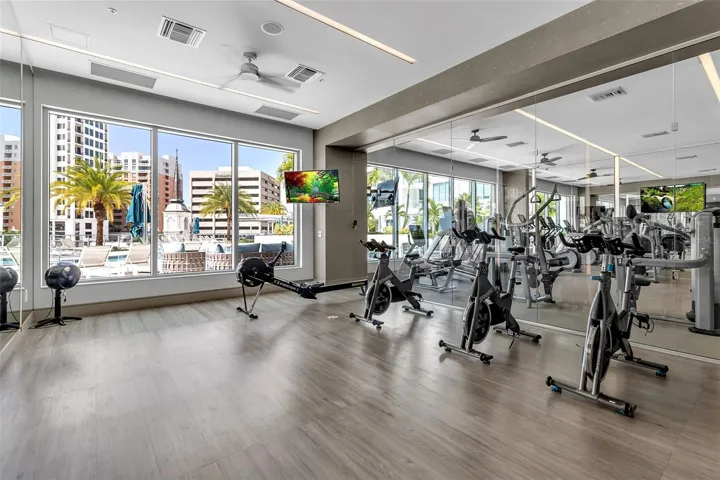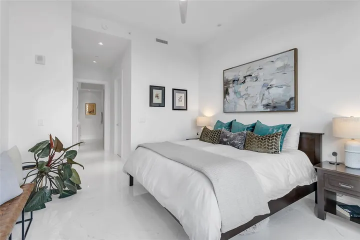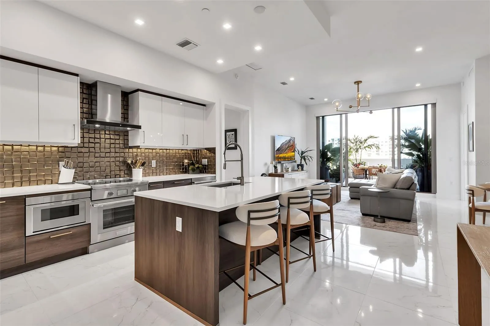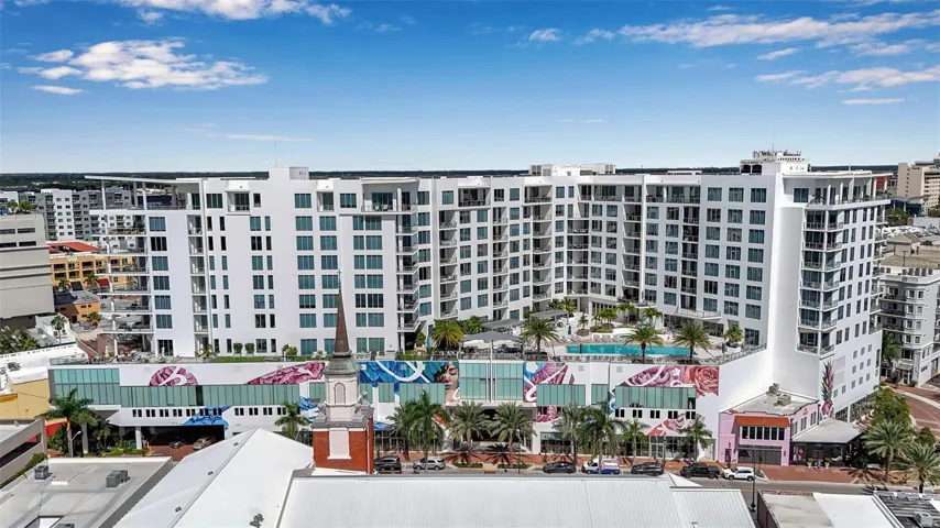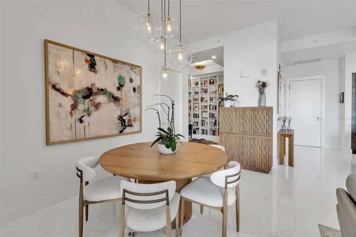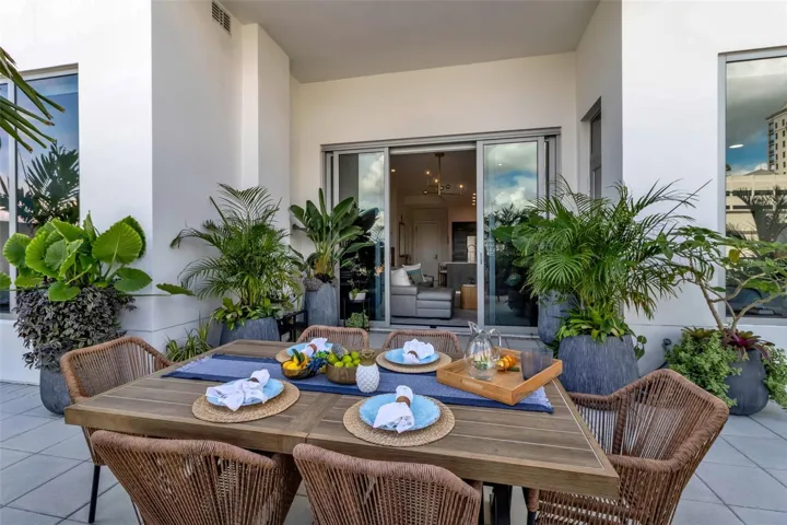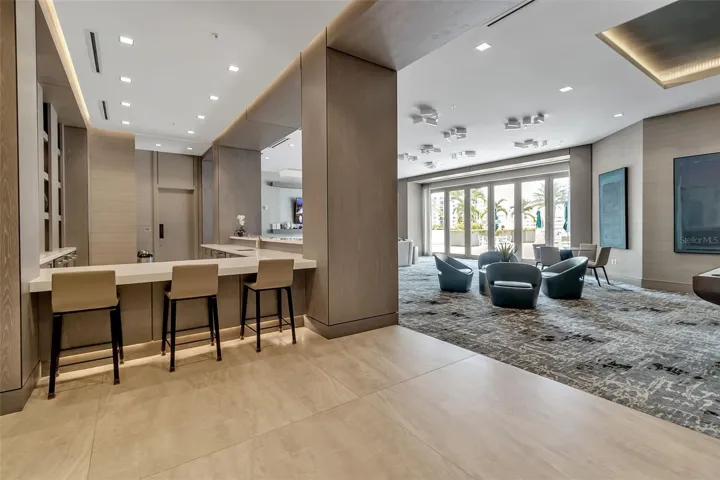 Experience the best of modern downtown living at The Mark Sarasota — where luxury design meets an unbeatable location. This north-facing 5th floor residence offers a sophisticated urban locale with downtown Sarasota just downstairs. And with a rarely found outdoor living space over 600 sf – this is more than just a home – it’s a lifestyle! Step inside this 2-bedroom, 2.5 bath home with a den and discover soaring 10-11 ft. ceilings, clean modern lines, and a seamless flow that extends effortlessly to your 20×40 outdoor terrace—perfect for indoor-outdoor entertaining. Enjoy gorgeous city views from your private retreat – while knowing your residence is built to the highest standards for safety and security. The gourmet kitchen is a showpiece, featuring European cabinetry, quartz countertops, custom backsplash – and newer Thermador stainless steel appliances, including a French door refrigerator and convection cooktop. A custom bookshelf makes the den the perfect spot to unwind and enjoy your favorite book – or privacy if working from home. You’ll instantly appreciate the expansive living and dining area – complete with RH lighting, gleaming floors and motorized shades. The split bedroom layout offers privacy and flexibility. The primary suite is spacious and bright, with direct access to the terrace and a spa-inspired bathroom featuring a large glass shower, dual vanities, quartz counters, and elegant marble tile floors. The guest bath boasts modern finishes with a tub/shower combo and glass doors. Your private terrace spans over 600 sf – rarely found in downtown Sarasota. It’s the perfect spot for winding down or entertaining a crowd for dinner and drinks. Steps from your door, resort-style amenities await: gorgeous saltwater pool and spa, cabanas, a fire pit lounge and grilling stations for effortless entertaining. Inside you’ll enjoy a state-of-the-art fitness center, club room with billiards, catering kitchen and bar – and even a media room for private screenings. With convenience and easy living in mind – you’ll also have access to a 24-hour concierge service, two assigned parking spaces, extra storage all in a pet-friendly community. With downtown Sarasota as your front yard, you’ll enjoy immediate access to award-winning restaurants, boutique shopping, cultural venues, theatre, a weekly farmers market – all just 2 blocks from Sarasota Bay. Downtown is downstairs!