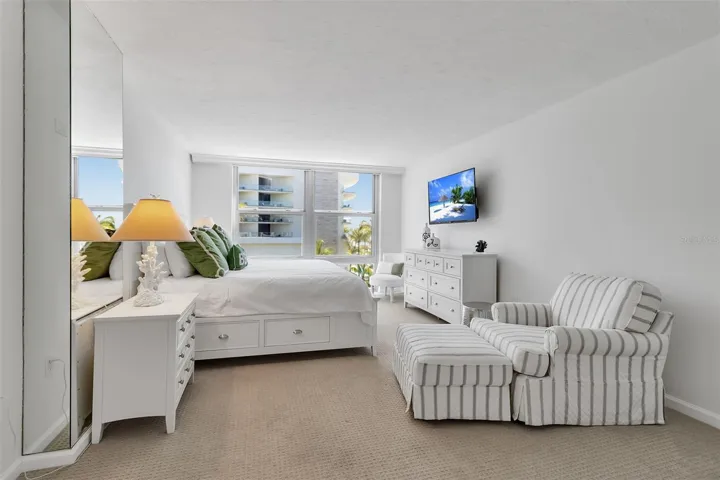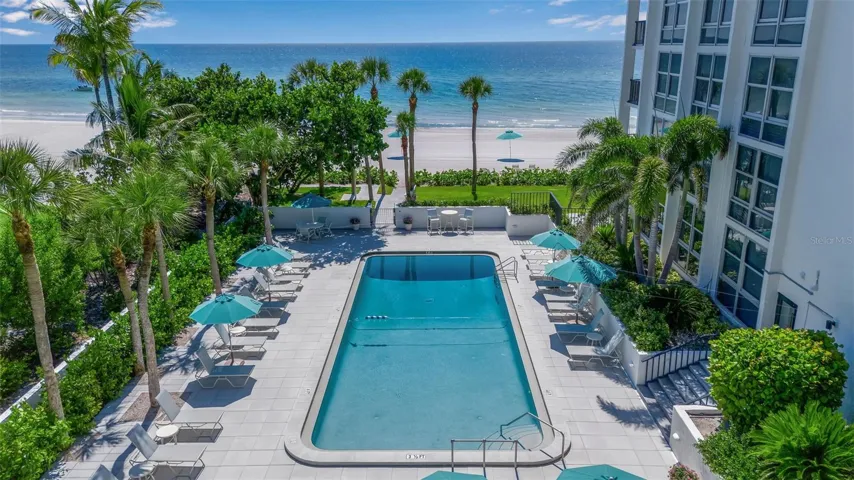 Experience Gulf-front living at its best from this residence perched on a high floor in the coveted Aquarius Club on Longboat Key. This South-facing 2-bedroom, 2-bath split plan offers a bright, open layout with impact-rated floor-to-ceiling windows, doors, and sliders that frame Gulf, beach and tropical views. Spacious living and dining areas flow seamlessly to a private balcony, perfect for relaxing and soaking in Gulf breezes. Offered turnkey furnished, this home is move-in ready and also provides an excellent rental opportunity. Aquarius Club, an intimate community of only 58 residences, has recently refreshed its common spaces and offers resort-style amenities including a Gulf-front heated pool, Har-Tru tennis and pickleball courts, fitness center, community rooms, and on-site management. Adding to the value, owners enjoy a complimentary social membership at the neighboring St. Regis Resort—with access to dining, spa, pool, and beachfront amenities, all with no dues, fees, or food minimums.