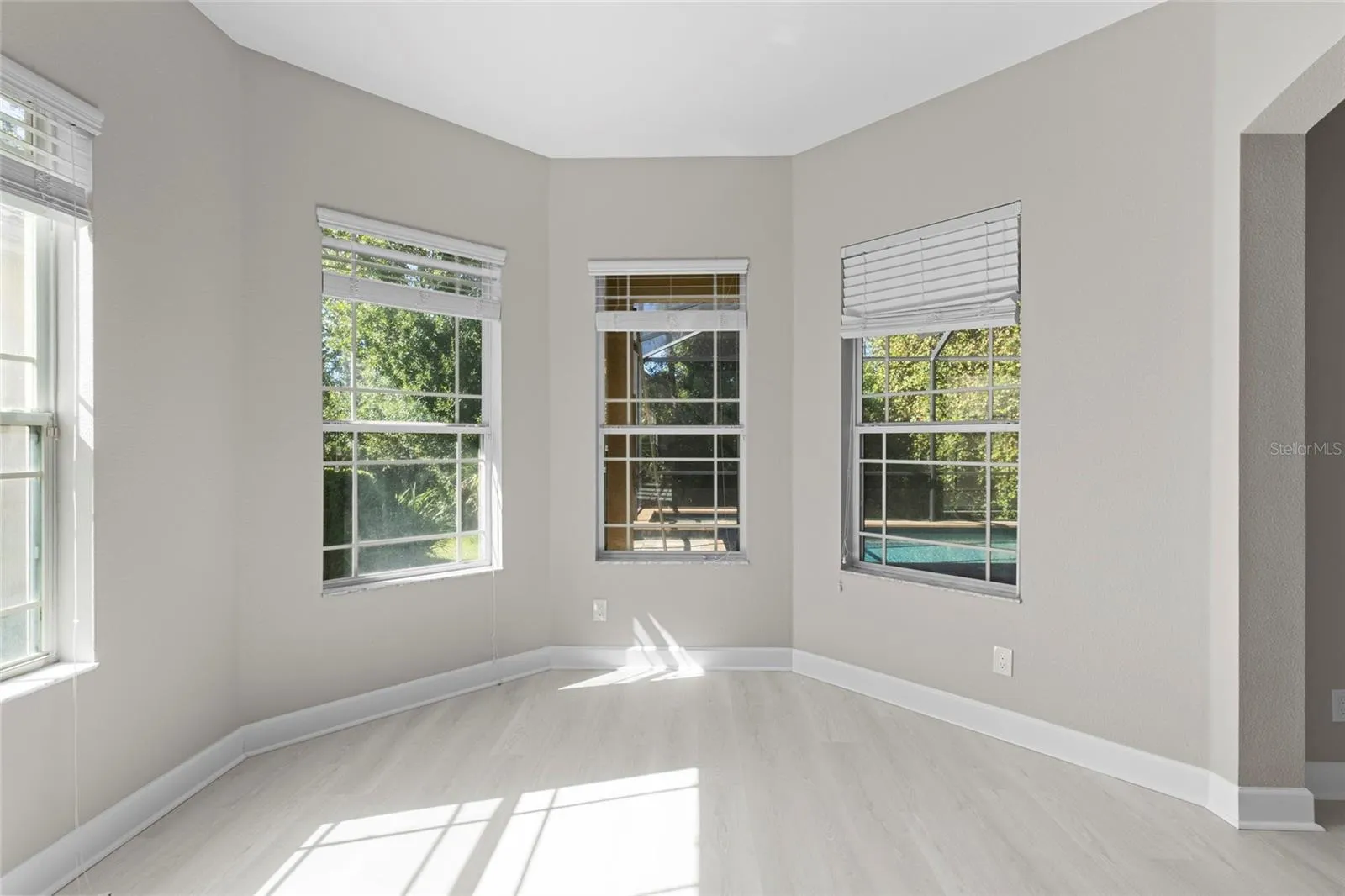 The screened-in pool overlooks lush green space, creating the perfect backdrop for enjoying the beautiful Florida lifestyle. Whether you’re relaxing in the sun, swimming, or hosting friends and family, this outdoor space is sure to impress.