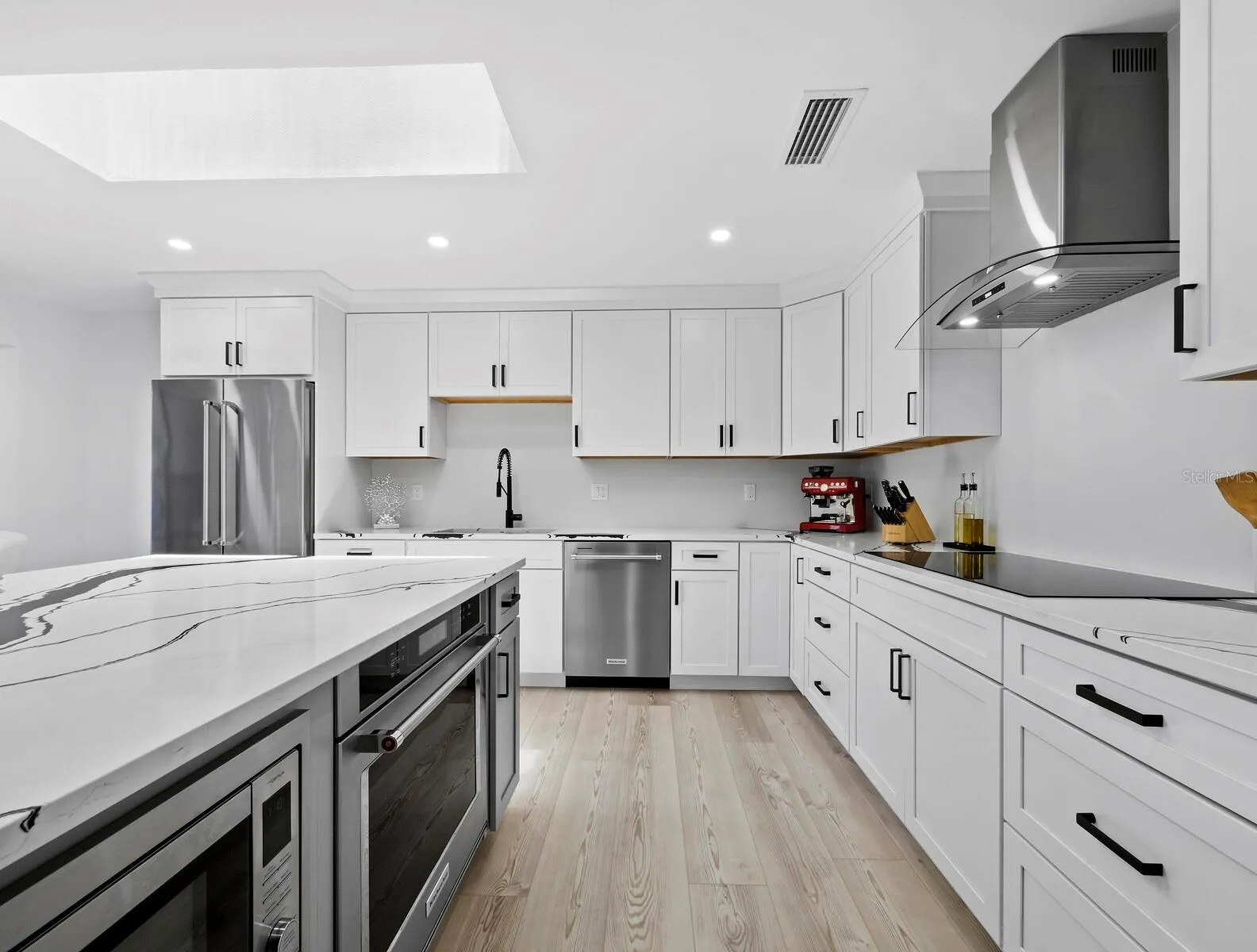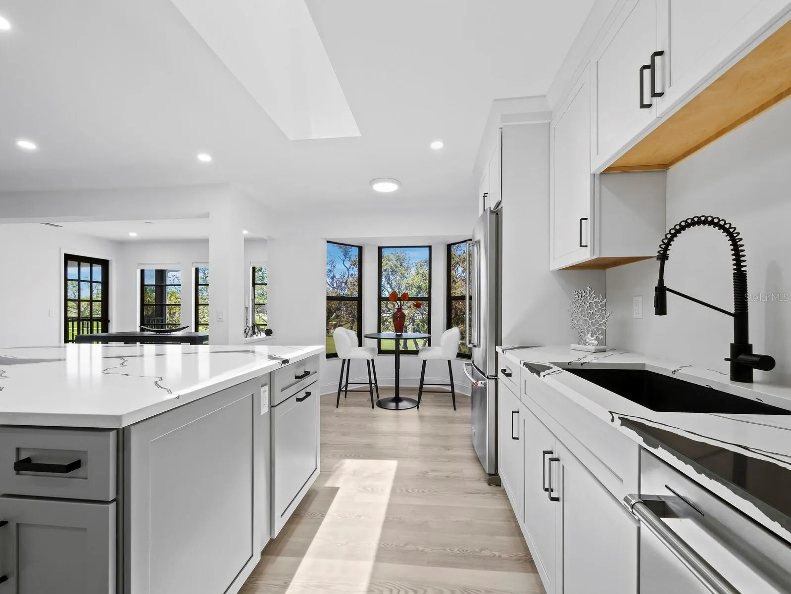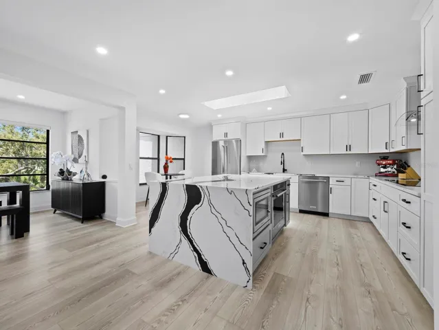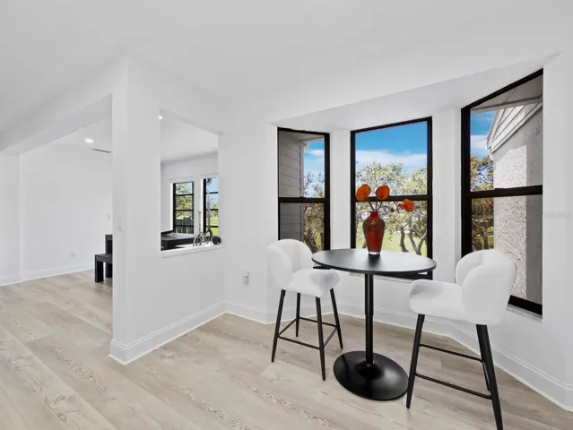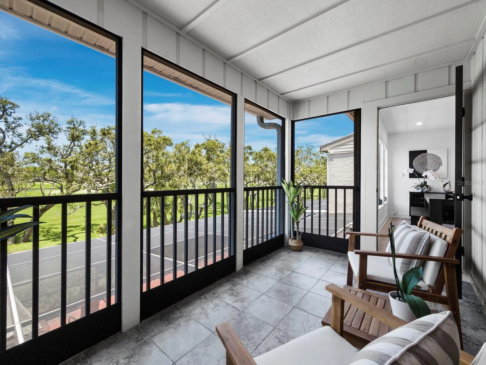 Located in the quiet, gated community of Bay Isles on Longboat Key, this beautifully renovated – 2nd-floor residence in Harbour Oaks offers over 2,000 square feet of comfortable, thoughtfully designed living space. The entryway has built-in shelves and cubbies that make it easy to keep jackets, shoes, and bags organized. Inside, the main living areas feature high tray ceilings, recessed lighting, and warm wood floors, creating a clean and open atmosphere. Large windows let in plenty of natural light, giving the space a bright and airy feel. The kitchen has been fully renovated with modern finishes, including quartz countertops, a 36-inch induction cooktop, KitchenAid stainless steel appliances, a wine fridge, and a large island with a waterfall edge. A skylight above adds to the open feel, bringing natural light to both breakfast nook and separate dining area. The living room leads out to a screened terrace with spectacular views of the golf course and pond – an ideal spot to relax or catch up with friends. The primary suite includes direct access to the terrace, soft carpet, vaulted ceilings, a custom walk-in closet, and an en-suite bath with dual sinks, a walk-in glass shower, and another skylight for natural light. Two additional bedrooms provide flexible space for guests, work, or hobbies. Living in Bay Isles includes access to private deeded beach access through the Bay Isles Beach Club. Optional membership to the Longboat Key Club provides access to 45 holes of championship golf (plus driving ranges with free balls and pro shops), 20 Har Tru tennis courts with resident pros and clinics, six private member-only restaurants and lounges, and a full-service marina (Moorings) with boating access to Sarasota Bay.