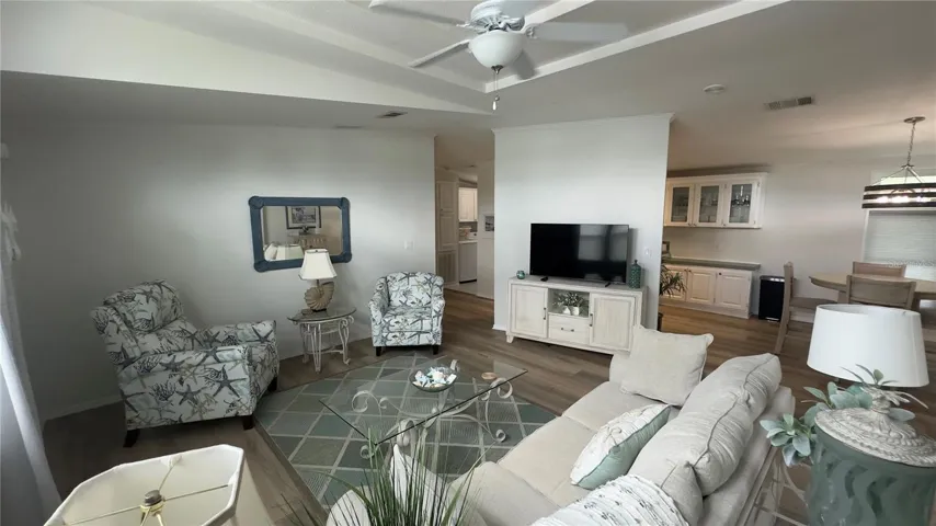 Welcome home to Leisure Lake Mobile Home Park in Palmetto, a 55+ age restricted land owned Co-Op community. This 1999 Palm Harbor manufactured home features 1242 square feet consisting of 2 bedrooms, 2 bathrooms and a private office/den enclosed with glass French Doors with a separate entrance. This home is being sold TURNKEY with all furnishings and contents, Recent improvements include all new impact windows with energy saving window treatments installed in 2024, a brand-new carport and storage room roof was installed in September 2025. This exquisite home has high-end, luxury laminate plank flooring throughout most of the home with new carpeting in the bedrooms. Other architectural features include Vaulted ceilings, ceilings fans in all rooms, new toilets and sinks in both bathrooms, with newer sink and faucet was installed in the kitchen along with newer appliances, base trim, washer & dryer, hot water heater and Anderson Front & back storm doors. Maintenance fees include water, sewer, trash, and lawn maintenance for $212.00 each month. Amenities include clubhouse, lake for fishing, swimming pool, community library, pickle ball, shuffleboard courts, fitness center with tons of activities. This home is located just north of Historic Palmetto and is located in NON-FLOOD ZONE convenient to Anna Maria Island and other beaches, shopping, restaurants and I-75 & I-275 are just a few miles away. So, just pack your bags and start living your best beach life!