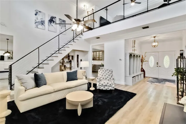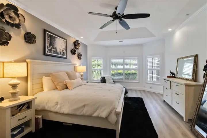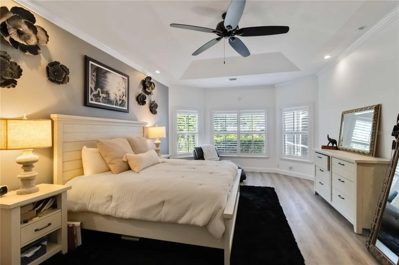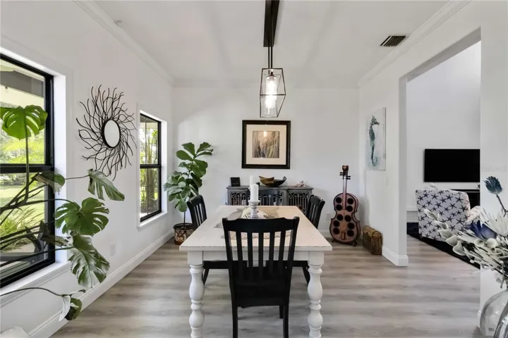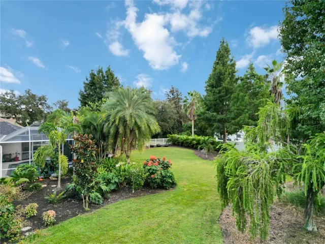 The fully fenced backyard is a tropical retreat, featuring fresh sod, 18 pineapple plants, fruit trees, and lush landscaping. Enjoy a heated pool, covered patio, pool bath, and outdoor shower—ideal for year-round enjoyment.
