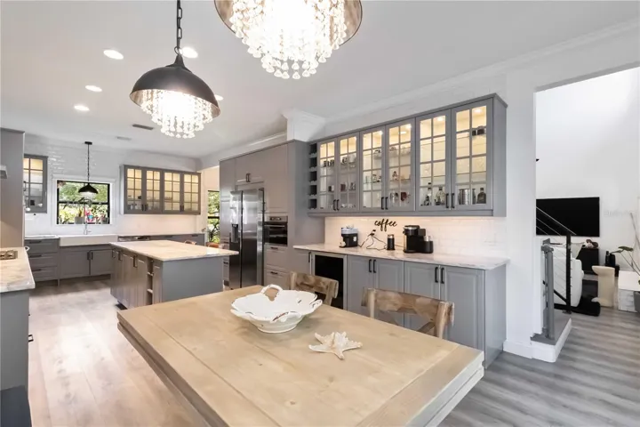 The chef’s kitchen is well-appointed with a double oven, ample cabinetry, a large island with built-in table, and a separate dining room. Upstairs includes two additional bedrooms, a full bath, and a versatile bonus room that could easily be converted back into a fourth bedroom.