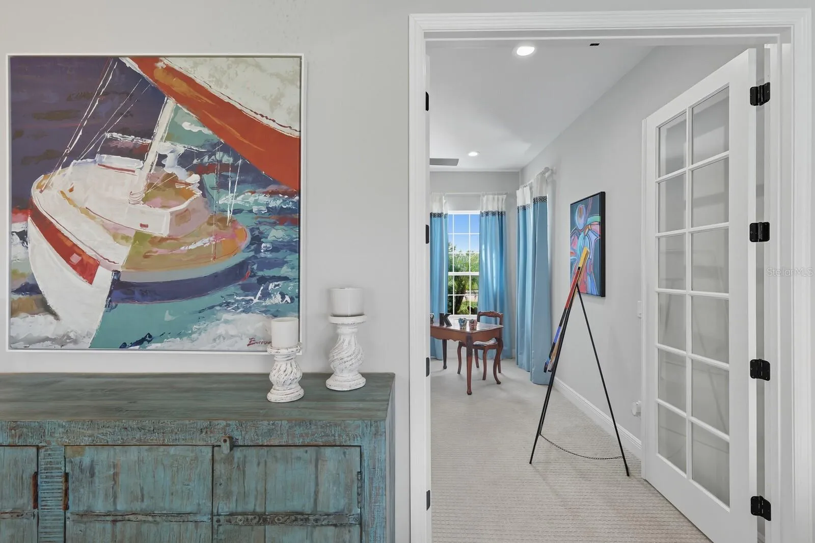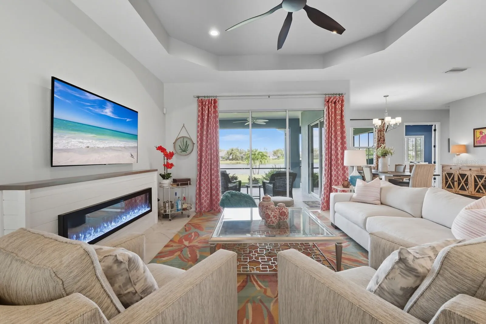 Priced to sell, why wait to build when you can move right into this stunning Neal Captiva model with an incredible water view just built in 2021! Buyer Incentive 1/0 rate buy down!! No CDD fees and all of the fabulous furnishings are available as well. You have to see this gorgeous home as it shows better than a model. Amazing opportunity to own this over 2,700-square-foot home with three spacious bedrooms, three full baths plus a club room and a den all on a premium lake lot. This is the only water lot in the community with a bubbler to keep it fresh and clean. Great split floor plan and a three-car garage. Upon entering, notice the beautiful view through the sliders that open for entertaining along with the newly added outdoor kitchen. Features also include a new fireplace, a chef’s kitchen with a large island, gas cooktop, and stainless steel hood, upgraded flooring, lighting, tray ceilings, eight-foot doors, high ceilings, plantation shutters, custom draperies, a smart-home package, tub-in laundry, and more. All of this located in the gated community of Canoe Creek. The huge primary suite offers two walk-in closets, double vanities, and check out the gorgeous tub. Amenities include a fitness center, resort pool and spa, fire pit, a picnic shelter with grills, pickleball courts, a dog park and walking trails for your enjoyment. Conveniently located near the interstate, shopping and restaurants. What are you waiting for? Make this home yours now!