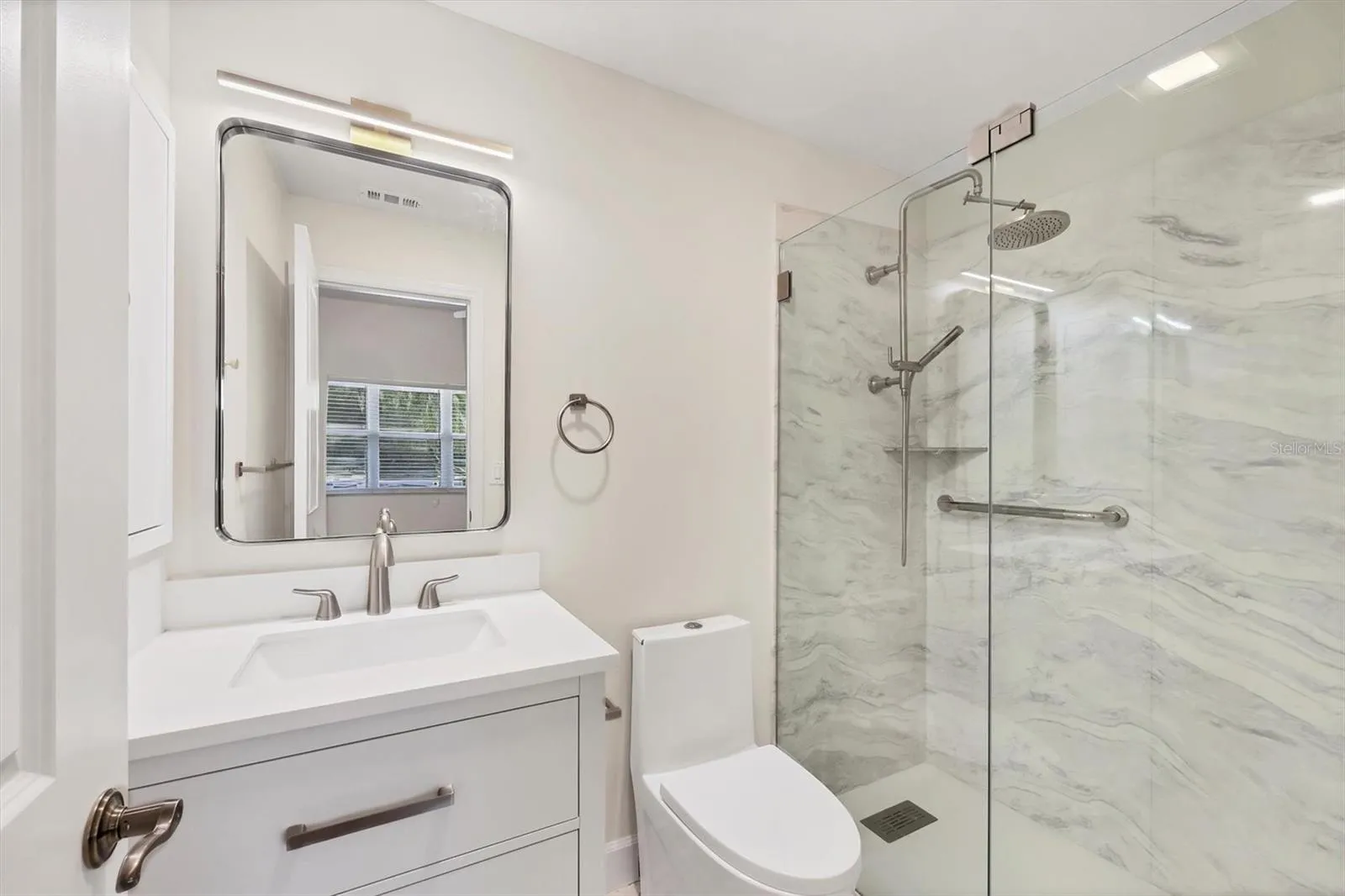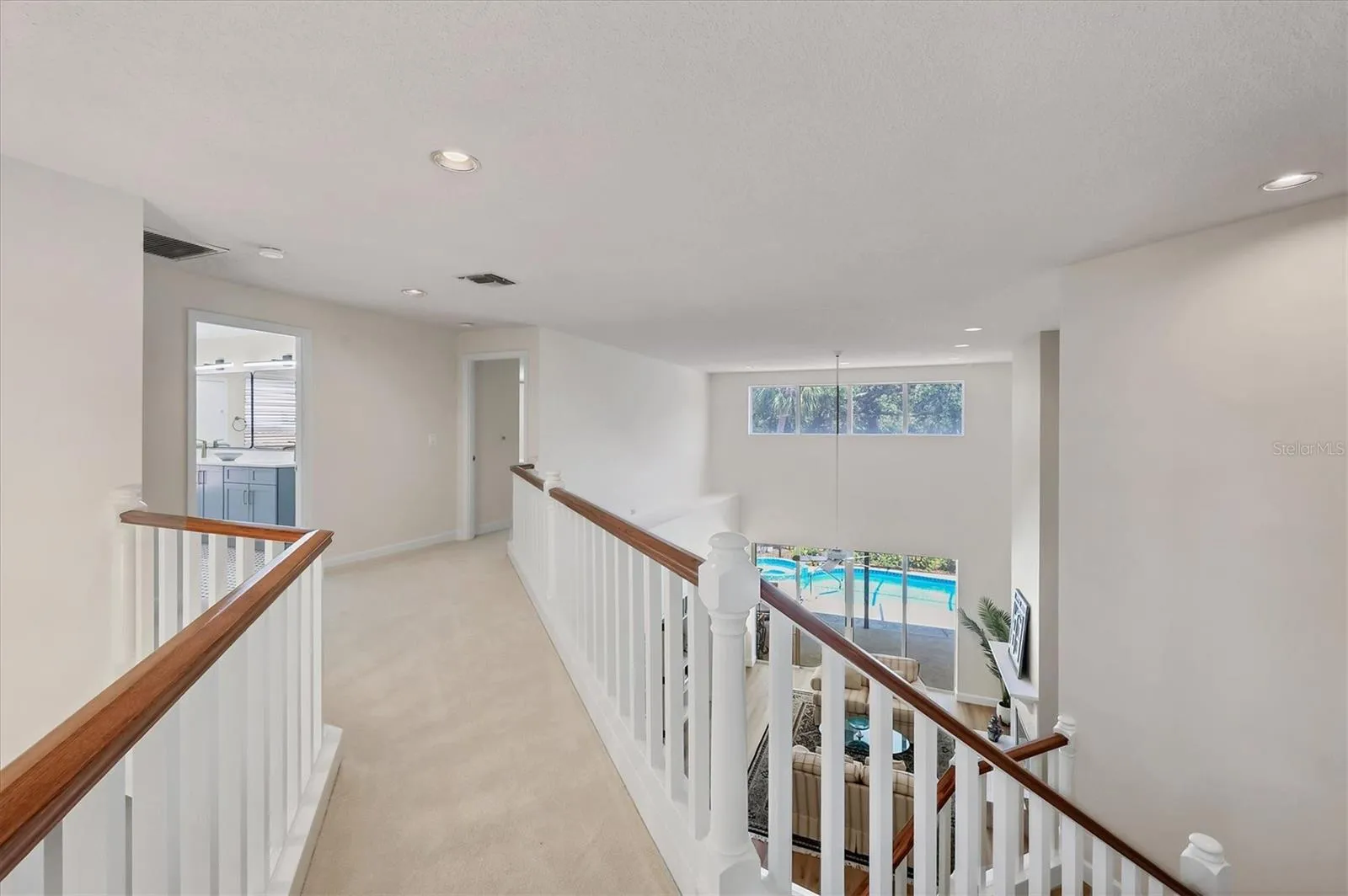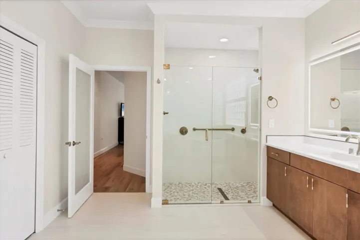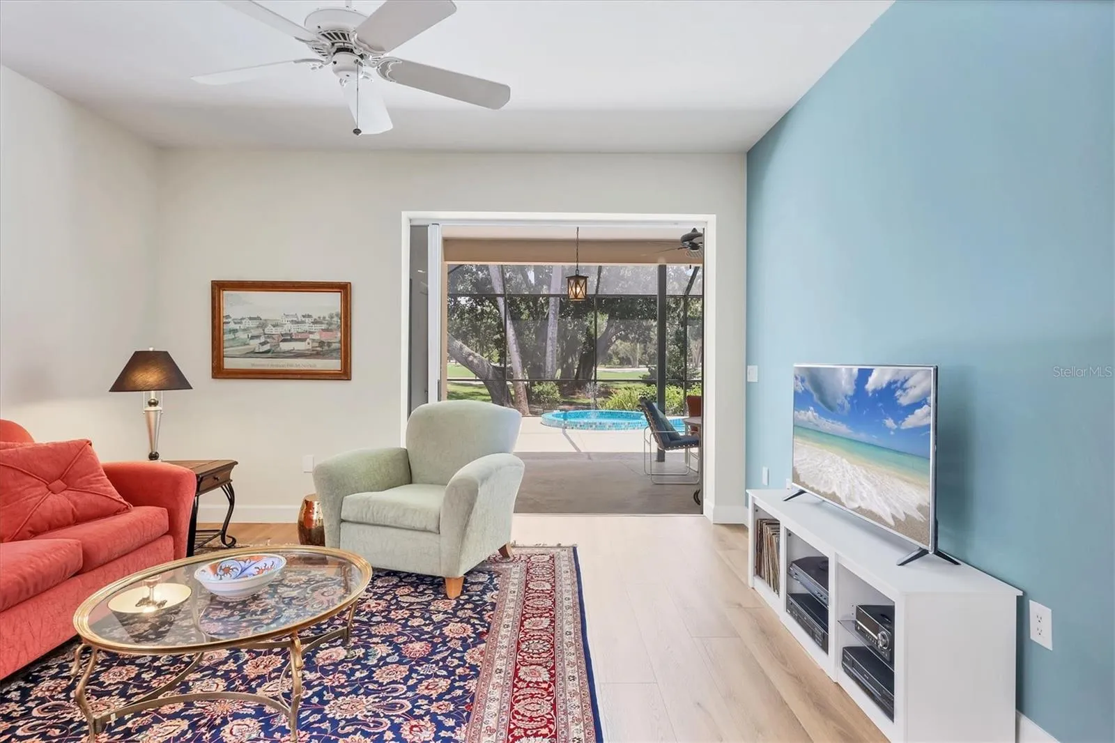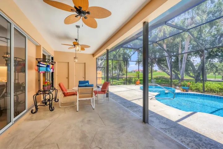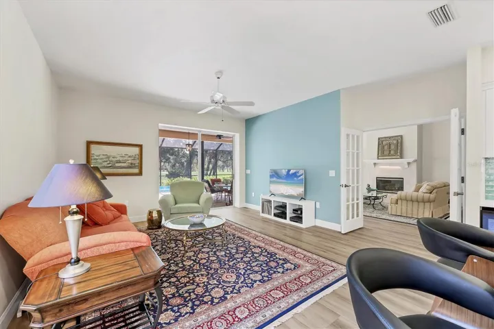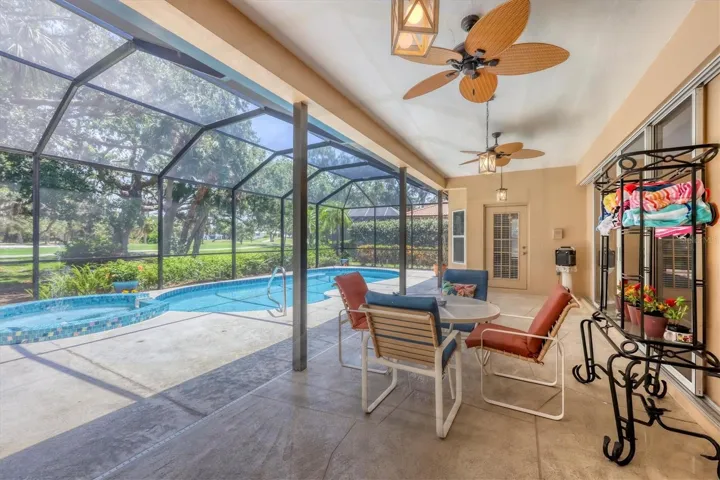 Golf community paradise reimagined. This home was meticulously renovated inside and out and features a two-story atrium living room, expansive views of the pool and golf course, a large primary bedroom with bay windows and pool access and an amazing spa-like primary bath. Poised along the 10th fairway of the TPC Prestancia Stadium Course, 7551 Calle Facil offers an elevated blend of lifestyle and luxury in one of Sarasota’s revered golf communities. Built on almost a 14,000-square-foot lot, the home features over 3,500 square feet of refined living space, including vaulted ceilings in the foyer and living room, transom windows for added light, and wide plank luxury vinyl flooring on the first level. This beautiful five-bedroom, five-bath home has been totally renovated, completed in March 2025 with thoughtful design and upgrades to enhance comfort, aesthetics and function, especially for those drawn to the golf-centric way of life. Pocketing sliding glass doors in the living and family rooms open fully to the lanai, embracing Florida’s indoor-outdoor lifestyle. The living room’s wood-burning fireplace adds a warm focal point beneath soaring ceilings. The gourmet kitchen has been completely re-imagined with new LG smart appliances, quartz countertops, custom cabinetry and top-of-the-line fixtures. A wine refrigerator and closet pantry enhance functionality, while adjacent access to the dining room and family room supports seamless flow. Updates also include 14 new doors and hardware, new switches, dimmers, child-proof lower receptacles and energy-efficient lighting throughout. The primary suite feels more like a private spa, with new cabinets featuring dual vanities with illuminated, heated mirrors, a gorgeous walk-in rain shower with 3/8-inch frameless glass, chandelier lighting, and a luxurious Jacuzzi whirlpool tub with Kohler fixtures surrounded by floor-to-ceiling walls of honeydew color glass tiles. A second en-suite bedroom on the main level offers flexibility for guests with walk in rain shower, new cabinet, 3/8-inch frameless glass enclosure while upstairs there are three additional bedrooms (one used as an office) and a updated bath offering new cabinetry with a double sink, spacious walk-in closets and golf course vistas. Anchored by sweeping views of manicured greens and lush landscaping, the outdoor living area is an extension of the home. A fully resurfaced and tiled pool and spa (2025) with all new equipment are framed by a new lanai cage (June 2024), complete with upgraded fasteners, fans, lighting and a renewed dedicated powder bath. Covered lounge space invites year-round relaxation and effortless entertaining, all with unobstructed views of the golf course. Additional improvements include a new water heater (2024), Maytag washer and dryer, custom window shades, Schlage locks and newly painted interior, walls, ceilings doors, baseboards and trim. The La Vista neighborhood in Prestancia includes landscape maintenance, exterior upkeep including roof repairs, pest control and dwelling insurance for a worry-free lifestyle. Ideally located and just a short drive to Siesta Key – TripAdvisor’s #1 Beach in the US – this home places you close to the area’s desirable destinations while offering serenity of a private golf-front retreat. Optional membership is available at TPC Prestancia featuring two 18-hole courses, dining and social activities.