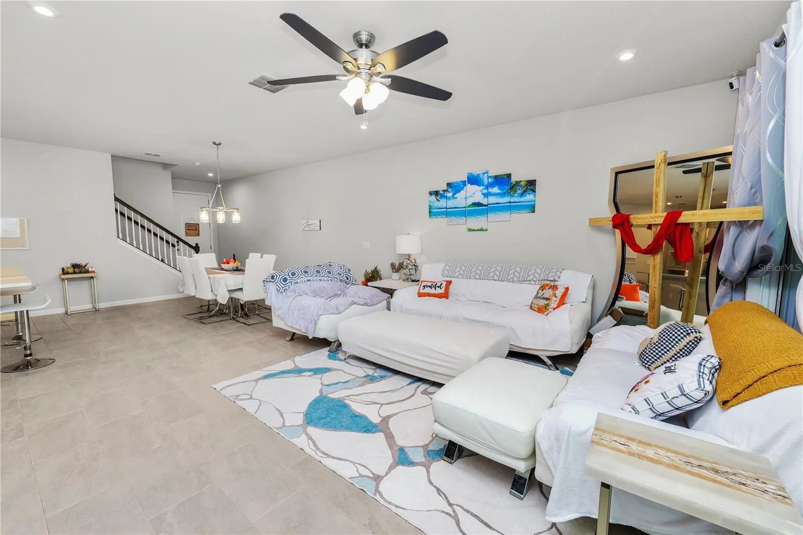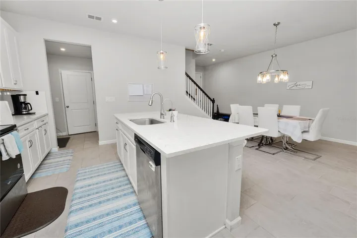 Assumable Mortgage available! Welcome to this beautifully designed 2022-built townhome featuring 3 bedrooms, 2.5 bathrooms, a spacious 2-car garage, and 2,230 square feet of modern living space. Located in the highly sought-after Parkview at Long Lake Ranch community, this home offers stylish upgrades and a thoughtfully planned layout. Step inside to find fresh interior paint, elegant 5” baseboards, custom-trimmed windows, and updated lighting and plumbing fixtures throughout. The open-concept main floor seamlessly connects the kitchen, dining, and living areas, creating an ideal setting for both everyday living and entertaining. Expansive 3-panel sliding glass doors bring in natural light and open to a private, paved back patio—perfect for relaxing or hosting guests.