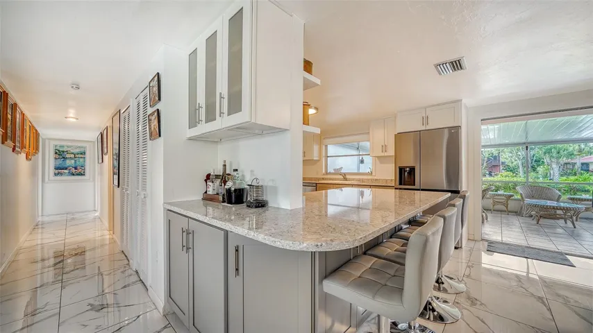 SARASOTA COUNTY…Discover the serene beauty of SHAKETT CREEK with this exceptional waterfront property. Boasting an impressive 236 feet of direct access to saltwater canals. The property is situated near the Gulf/Ocean and Intracoastal Waterway, providing a perfect blend of tranquility and recreational activities. You’ll have a hard time deciding whether to grill on the deck, go semi-pro in the spacious kitchen, or enjoy dinner in town. You can sit on the back porch, which is screened for privacy, or the open air porch, all options are open. This is a great place to be, well positioned on a quiet no-thruway street, the home is only minutes to outdoor recreational opportunities, dining and shopping. You’ll enjoy impressive views of Intracoastal Waterway/Canal while you sit on the dock fishing or bringing your kayak/jet skis/boat for water adventures. Attractive landscaping maximizes the value of the expansive yard. Your outdoor furniture transforms the inviting patio into an extension of the home, ideal for sunset dinners and starry nightcaps. There is also an added bonus of an air conditioned shed, for the kids, grandkids or to go read a good book while looking at the view or the water. The ensuite primary bedroom, (king bed) conveniently located on the main-floor, is well-designed and peaceful along with a custom built closet. The other 2 bedrooms, (queen and a pullout)unique and quiet, also offer the convenience of ground floor accessibility. Have fun packing this one full of warmth and memories. Call today and enjoy the stunning water views and the vibrant natural surroundings that make this area so desirable.
