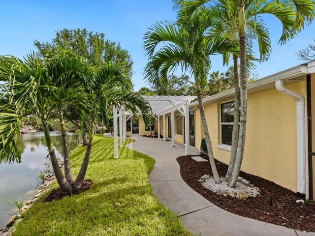 One or more photo(s) has been virtually staged. Tucked away at the end of quiet Estrada De Costa, a single lane road with just three homes, this unique and spacious Siesta Key 3 bedroom/3 bath lakefront property offers rare privacy, flexibility, and charm. The home was expanded in 2001, the property includes a 2 bedroom/2 bath main house, and a fully equipped one bedroom/one bath separate suite with its own private entrance, cozy living room, kitchen, walk-in closet, and screened porch with tranquil water views. Ideal for multigenerational living, guest accommodations, or income potential. Saltillo(Mexican) tile flooring flows throughout both living spaces and adds character and charm to every room, while the open layout flows seamlessly for comfortable everyday living. Sliding glass doors on the water side fill the rooms with natural light. The house did have water in the home after Hurricane Helene, so the owner completed some thoughtful and stylish renovations such as Shaker cabinets, quartz counters, subway tile backsplash, all new LG stainless steel appliances, new AC, and hot water heaters in both living spaces, and solid paneled doors throughout. New roof in 2022, and drain pipes lines in 2024. Located on Lake Rittwood, a serene neighborhood pond teeming with tilapia, turtles, ducks and birds, this home is a retreat. Stroll into Siesta Key Village, or catch sunset views at the Big Pass/Gulf public access at the West end of Givens St. and Ocean Blvd. This home offers the end-of-the-road seclusion, but still close to the wonderful activities of Siesta Key and Sarasota. Whether you’re hosting guests, housing extended family, or exploring rental potential, this unique layout offers flexible living options rarely found on the Key.