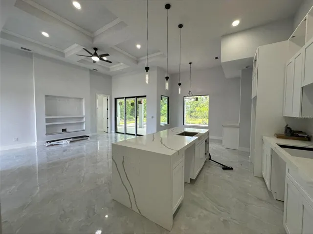 SELLER MOTIVATED!!! Submit your offers! This stunning home, soon to be completed in the heart of Cape Coral, offers a rare opportunity to own a brand-new, custom-designed residence with all the modern comforts. Situated on a generous 10,019 sq. ft. lot, this property features a spacious open-concept design where the kitchen, dining, and living areas flow seamlessly together—creating an inviting space for both everyday living and entertaining.