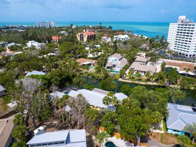 Tucked away at the end of quiet Estrada De Costa, a single lane road with just three homes, this unique and spacious Siesta Key 3 bedroom/3 bath lakefront property offers rare privacy, flexibility, and charm. The home was expanded in 2001, the property includes a 2 bedroom/2 bath main house, and a fully equipped one bedroom/one bath separate suite with its own private entrance, cozy living room, kitchen, walk-in closet, and screened porch with tranquil water views. Ideal for multigenerational living, guest accommodations, or income potential. Saltillo(Mexican) tile flooring flows throughout both living spaces and adds character and charm to every room, while the open layout flows seamlessly for comfortable everyday living. Sliding glass doors on the water side fill the rooms with natural light. The house did have water in the home after Hurricane Helene, so the owner completed some thoughtful and stylish renovations such as Shaker cabinets, quartz counters, subway tile backsplash, all new LG stainless steel appliances, new AC, and hot water heaters in both living spaces, and solid paneled doors throughout. New roof in 2022, and drain pipes lines in 2024. Located on Lake Rittwood, a serene neighborhood pond teeming with tilapia, turtles, ducks and birds, this home is a retreat. Stroll into Siesta Key Village, or catch sunset views at the Big Pass/Gulf public access at the West end of Givens St. and Ocean Blvd. This home offers the end-of-the-road seclusion, but still close to the wonderful activities of Siesta Key and Sarasota. Whether you’re hosting guests, housing extended family, or exploring rental potential, this unique layout offers flexible living options rarely found on the Key.