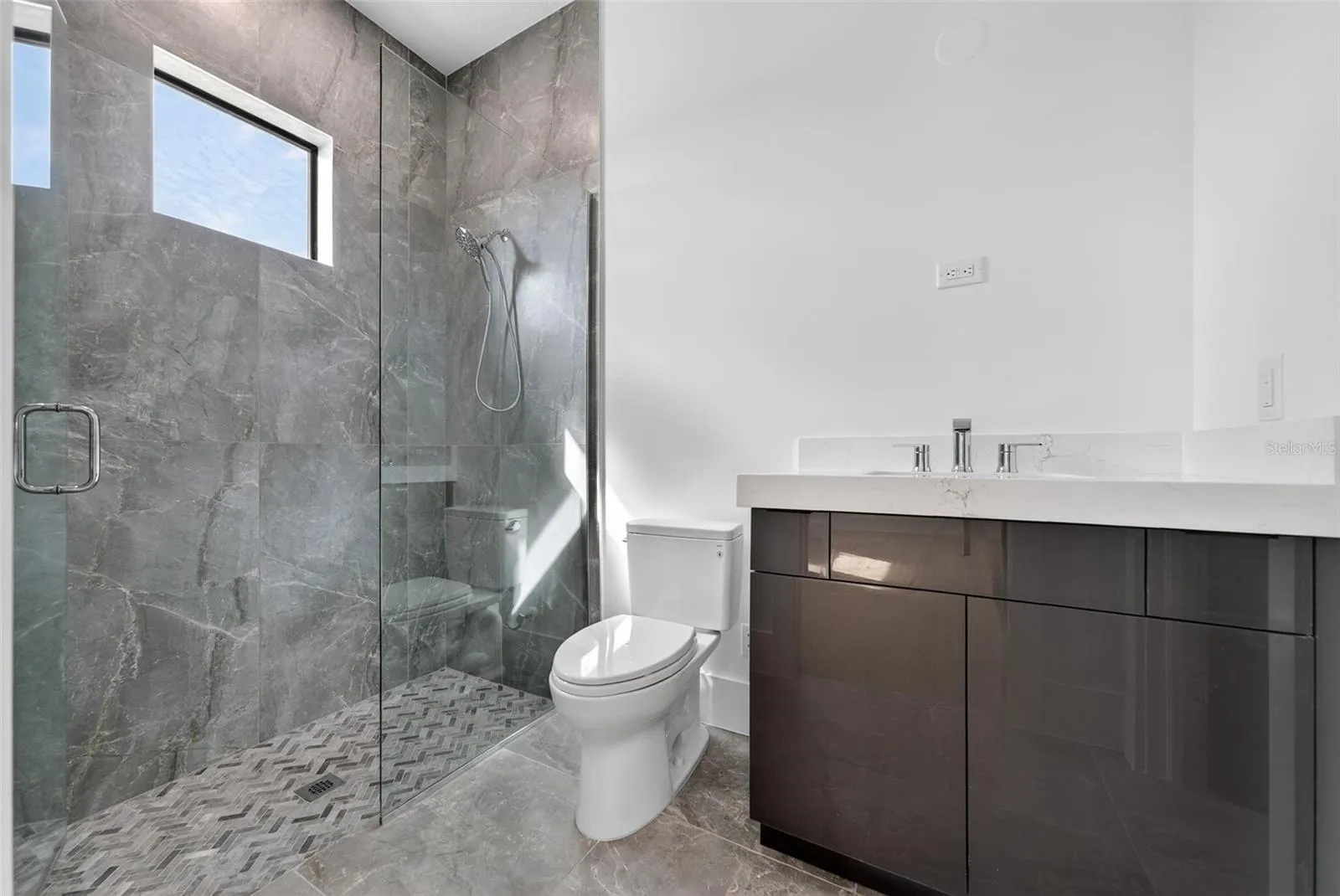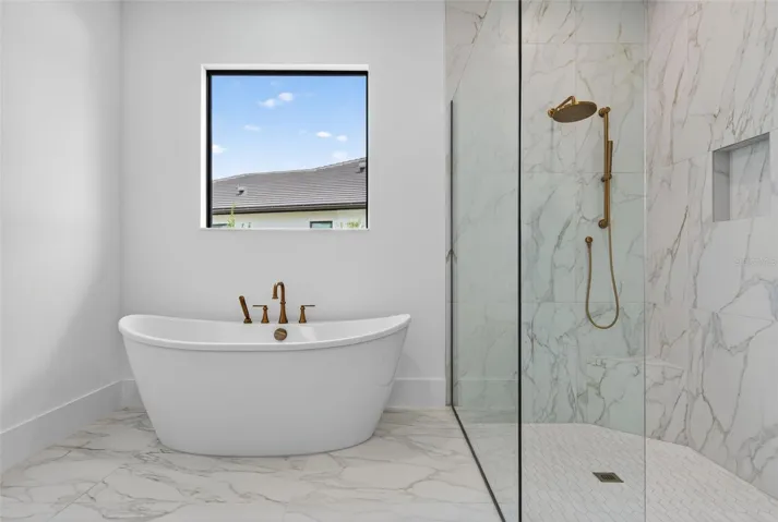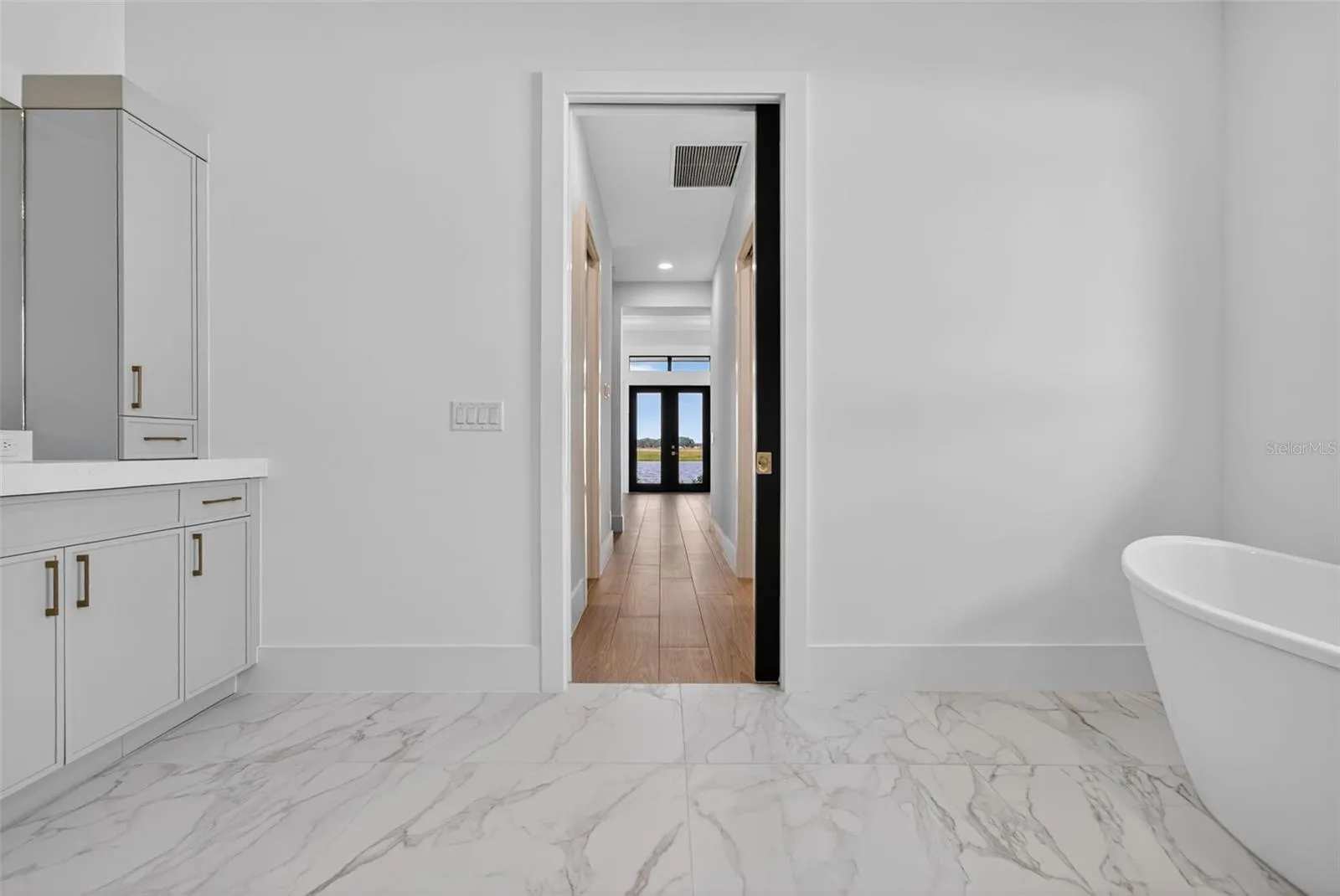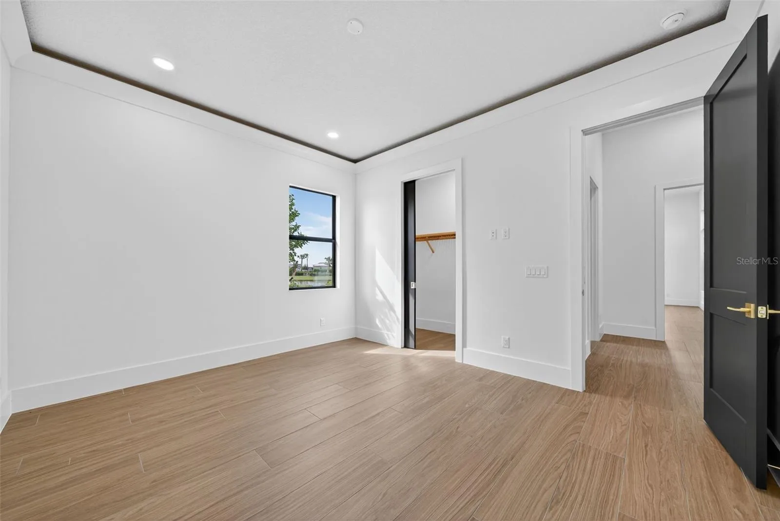 The split-bedroom layout ensures privacy, featuring an exquisite owner’s retreat. The master suite offers separate access to the enormous screened patio, allowing you to step right out and enjoy the serene lakefront air. The luxurious master ensuite is a private spa experience, complete with a free-standing soaking tub, a separate expansive shower area, dual sinks, and dual walk-in closets.