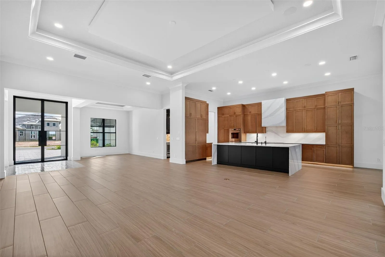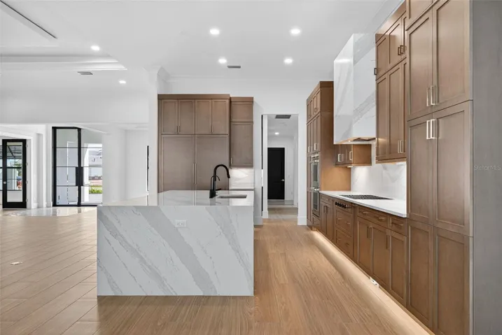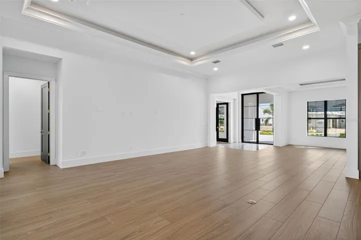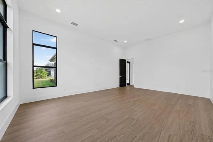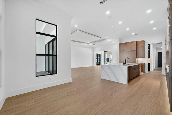 Designed for the discerning homeowner, this residence boasts a spectacular open floor plan, flowing seamlessly from the impressive foyer through the formal dining area and into the expansive living room, kitchen, and breakfast nook—all with breathtaking views of the lake. The gourmet kitchen is a chef’s delight, while the adjacent separate entertainment room provides an ideal space for hosting or relaxing while gazing out at the water.