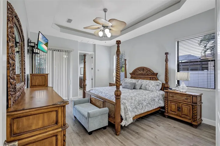 Set within a quiet cul-de-sac in desirable Country Creek, this four-bedroom, three-bath home built by La Maison. Tall ceilings and generous windows fill the home with natural light, while newer flooring throughout and a new roof (2024) make it truly move-in ready. The kitchen’s warm wood cabinetry anchors the living spaces, and the home’s thoughtful design includes a central vacuum system and plumbing in place for a future pool. The primary suite offers a private retreat with both a soaking tub and a separate shower. Out back, the most picturesque setting awaits — tranquil lake and preserve views, with plenty of space to create the outdoor oasis you’ve always imagined. With oodles of room for a pool, low HOA fees, and no CDD costs, this home blends comfort, value, and beauty in one of the area’s most naturally scenic communities.