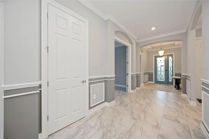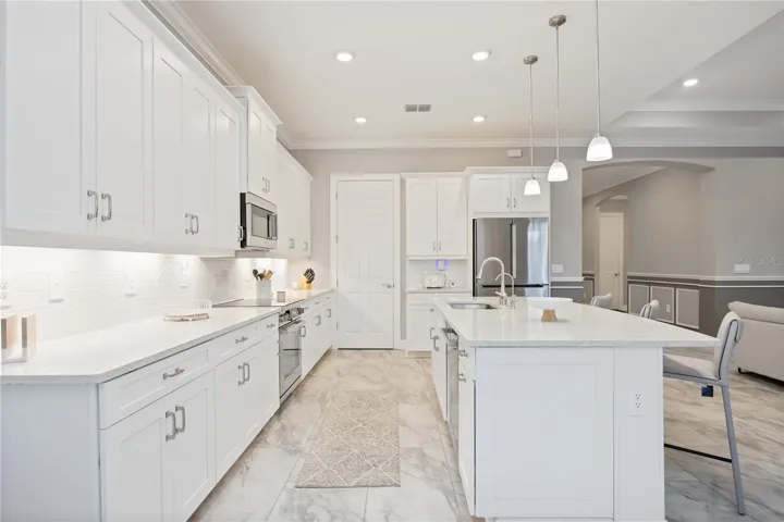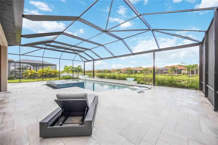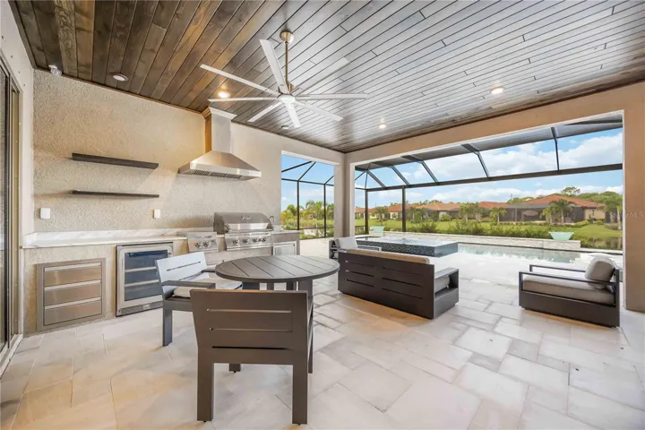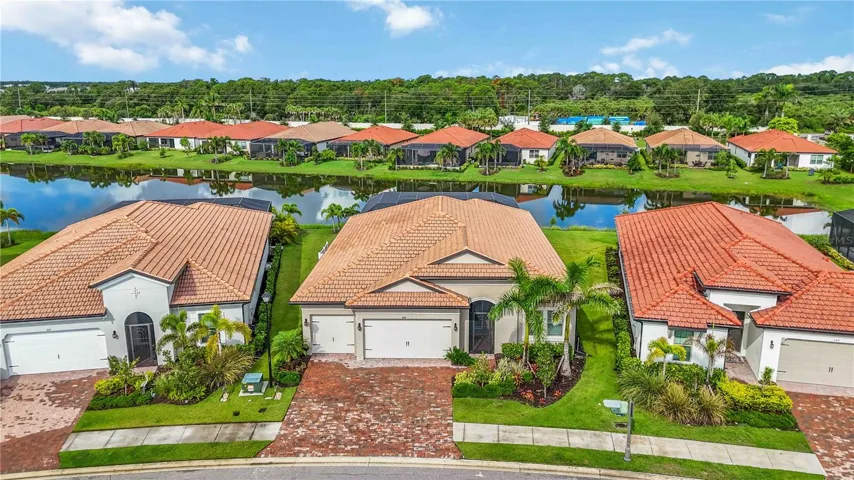 Welcome to this exquisite 3-bedroom, 5-bathroom residence spanning 2,540 square feet in the exclusive gated community of Toscana Isles. Built in 2023, this modern home blends luxury and functionality with thoughtful upgrades throughout. Step inside to discover an open-concept layout featuring luxury vinyl plank flooring over ceramic tile, providing both durability and elegance. The gourmet kitchen is a chef’s dream, equipped with premium Bosch appliances, while the adjacent laundry room boasts high-efficiency LG washer and dryer units. The living spaces are adorned with stylish Italian furniture, creating an inviting atmosphere ready for immediate enjoyment. The primary suite offers a serene retreat with an en-suite bath, complemented by two additional bedrooms, each with private baths for ultimate comfort and privacy. A versatile den or office space adds flexibility for remote work or hobbies. Outdoors, entertain in style on the expansive lanai, highlighted by a beautiful tongue-and-groove ceiling and a fully equipped outdoor kitchen. Relax with the premium RH outdoor furniture set, perfect for al fresco dining while overlooking the lush, maintenance-free landscaping, infinity spa (also known as a champagne spa), and numerous water features on a generous nearly 10,000-square-foot lot. Residents of Toscana Isles enjoy resort-like amenities, including an infinity-edge pool, state-of-the-art fitness center, tennis and pickleball courts, bocce ball, a dog park, kayaking and fishing on scenic lakes, and a vibrant clubhouse with planned community events. Conveniently located near pristine beaches, shopping, and dining, this home offers the ideal Florida lifestyle.