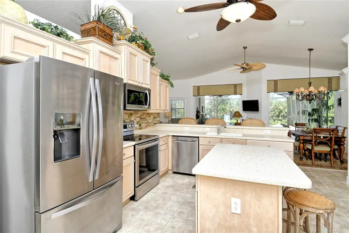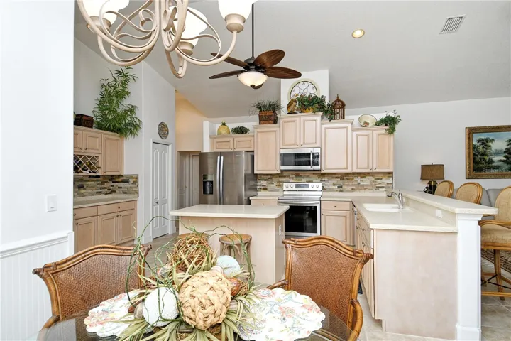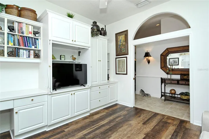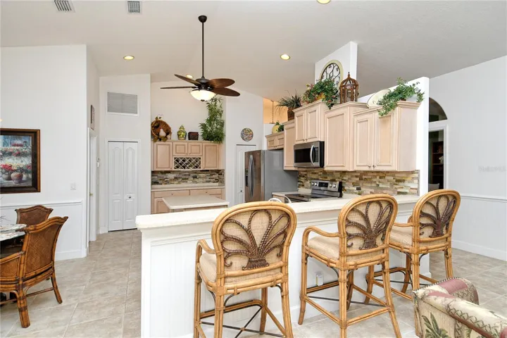 This is the property you have been waiting for! This absolutely gorgeous Innisbrook model Patio Home in Heritage Oaks Golf & Country Club features nearly 2,000 square feet of living space and a stunning pool overlooking the picturesque water and preserve views in a tranquil and quiet part of the community. This lovely home has 2 bedrooms, 2 full bathrooms, a den/study that can double as a third bedroom, an oversized screened lanai with a gorgeous free form swimming pool, and a spacious 2 car attached garage. The owners of this property have maintained the property impeccably well and it shows! Many recent updates have been done to the home including a new roof (2024), a new paver driveway (2024) new air conditioning system (2024), new painting of pool cage and patio floor, and the property has been re-piped/re-plumbed (2023). As soon as you walk through the front door, you’re greeted with a ton of natural light flowing in through the rear slider doors. The decorative chair rail and beadboard details really add to the beauty of this home and the soaring vaulted ceilings make the space feel open and large, perfect for entertaining friends and family. Even the dining room features a spectacular built-in area with crown molding, decorative details, recessed lighting, and a cabinet array for additional storage. The den/study is a perfect flex space complete with luxury vinyl flooring, a usable built-in desk, and enough space that allows the room to be used conveniently as another bedroom if need be. The large primary suite provides plenty of space with dual walk-in closets, and a sizable bathroom complete with double sinks, a large soaking tub and shower. As you make your way outside, you’ll fall in love with the sounds of water, the beautiful swimming pool with a flowing waterfall, and the panoramic views of water and nature this property features. It is truly a spectacular sight! Relax in the evening and watch the abundance of wildlife that frequent this Certified Audubon Neighborhood. Heritage Oaks is known for its pristine 18-hole golf course, har-tru tennis courts, fitness center, 24-hour security, an impressive recently renovated clubhouse with 2 restaurants including the sensational 19th Hole Lounge, 5 heated swimming pools, and a calendar of events packed with activities. Take a tour of this outstanding property today!