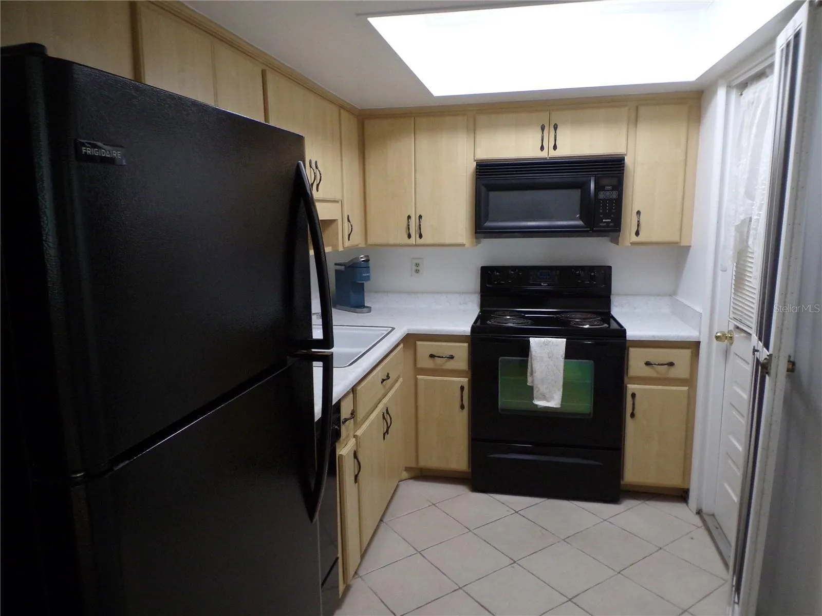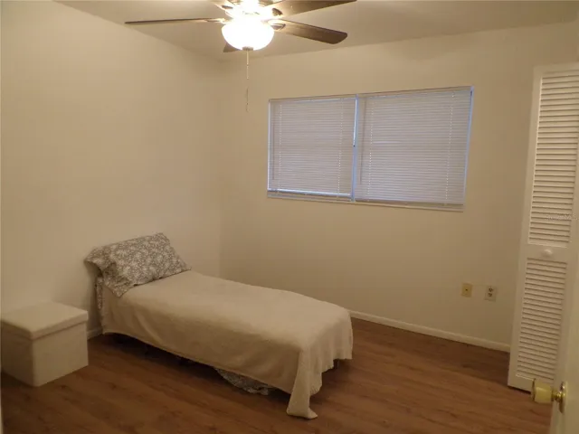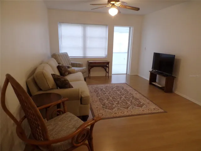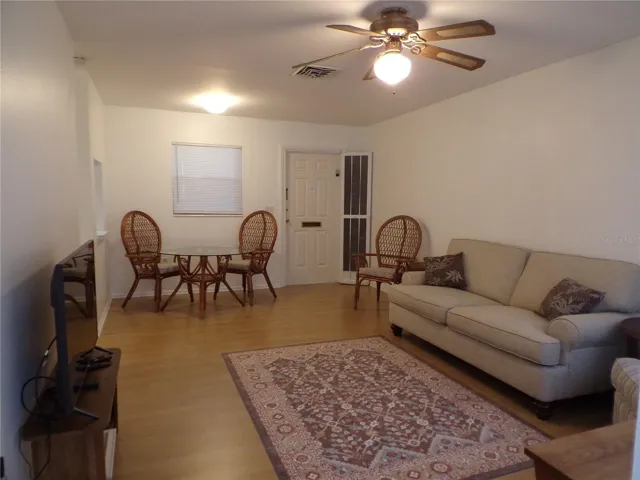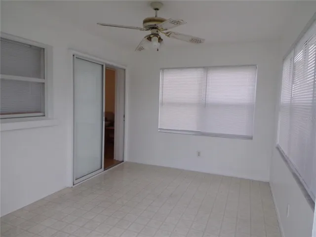 This home is move in ready with Beautiful Light Oak Kitchen Cabinets, Newer Black Appliances & Laminate flooring throughout the main living areas & bedrooms. There is a Lovely Enclosed Florida/Bonus Room with a sliding glass door available for your comfort and enjoyment, which also provides access to a small open Patio in the back to relax. All new blinds have just been installed throughout the entire unit and the A/C has just been serviced. The association recently replaced the roofs in the complex and are great about keeping up with maintenance on the units and the beautiful tropical foliage. There is a spacious Primary Suite with En-suite Bath for the owners’ Privacy. You can Invite your Family or Northern Guests to use the other bedroom & Main Bath. What a great way to start the fall season with a nice home in Florida! The Unit has been painted throughout with a blank slate of white, ready for your color accents and decorating ideas!