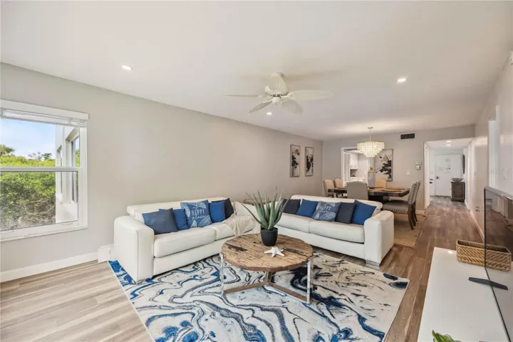 Modern Waterfront Living in the Heart of Longboat Key-Experience the best of coastal living in this beautifully renovated 2-bedroom, 2-bathroom condo, perfectly situated on the water in one of Longboat Key’s most desirable communities. This light-filled residence features a newly reimagined open-concept kitchen with gleaming quartz countertops, bright modern cabinetry, premium stainless steel appliances, and recessed lighting—creating a fresh and inviting space ideal for entertaining. The seamless flow continues into the dining and living areas, enhanced by high end LVP updated flooring throughout. Both bedrooms offer comfort and tranquility, complemented by two spa-like bathrooms boasting high-end finishes, updated designer fixtures and fans throughout along with shiplap accents. A brand-new HVAC system ensures year-round comfort, electric panel replaced 3 years ago. Enjoy picturesque water views and take advantage of the community’s exceptional amenities, including a recently renovated heated waterfront pool, tennis courts, private kayak launch, waterside seating areas, and boat docks available for rent.