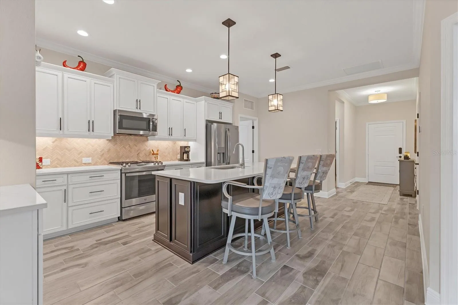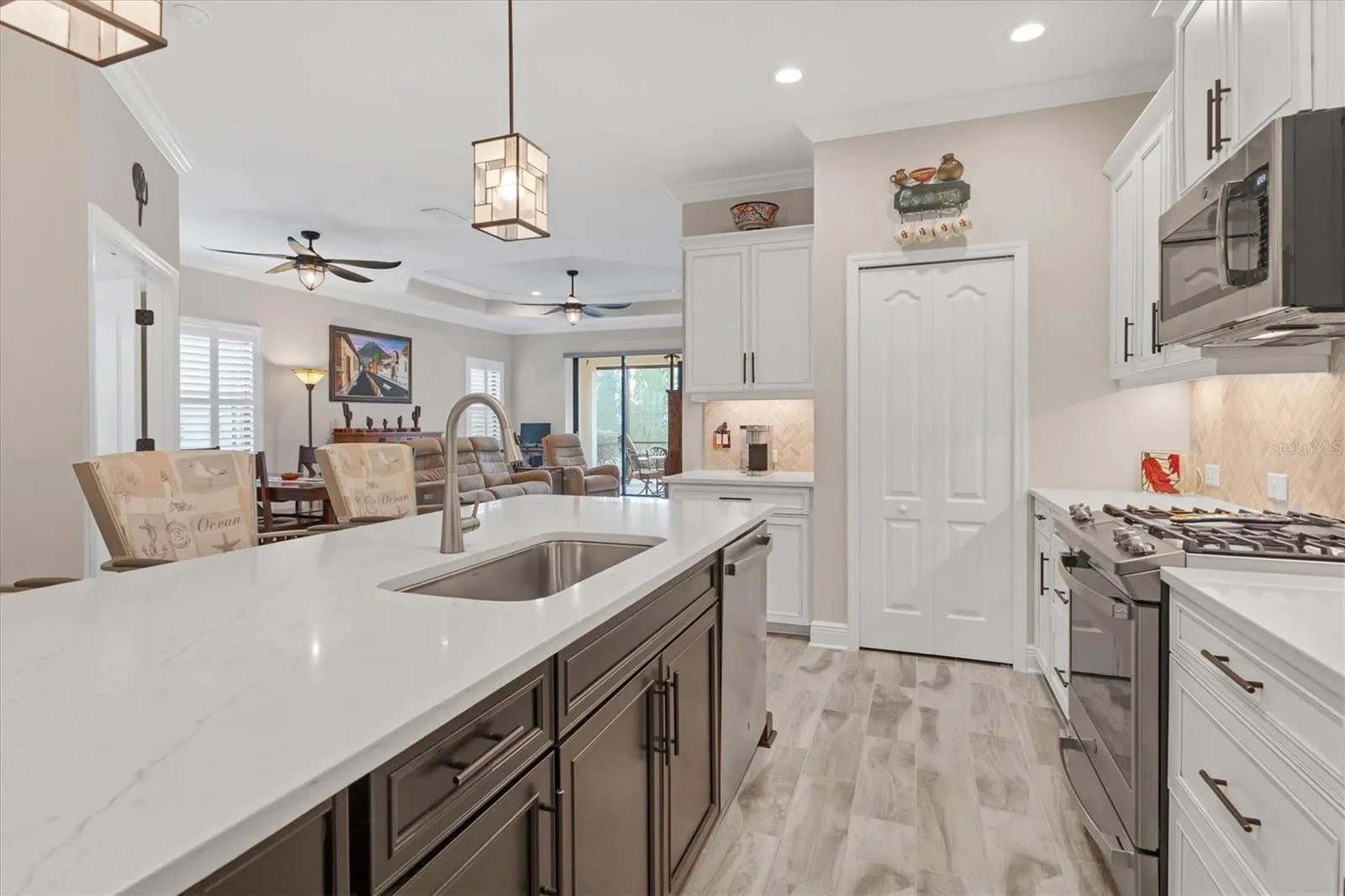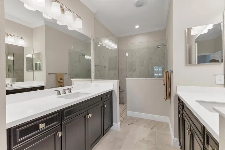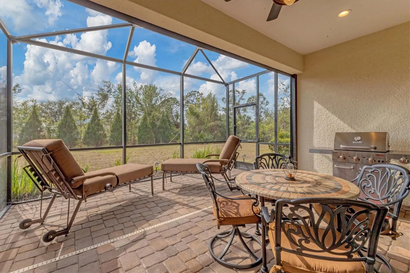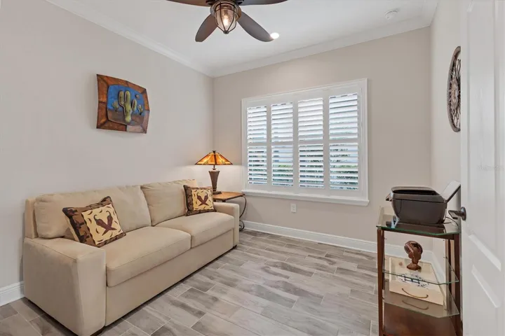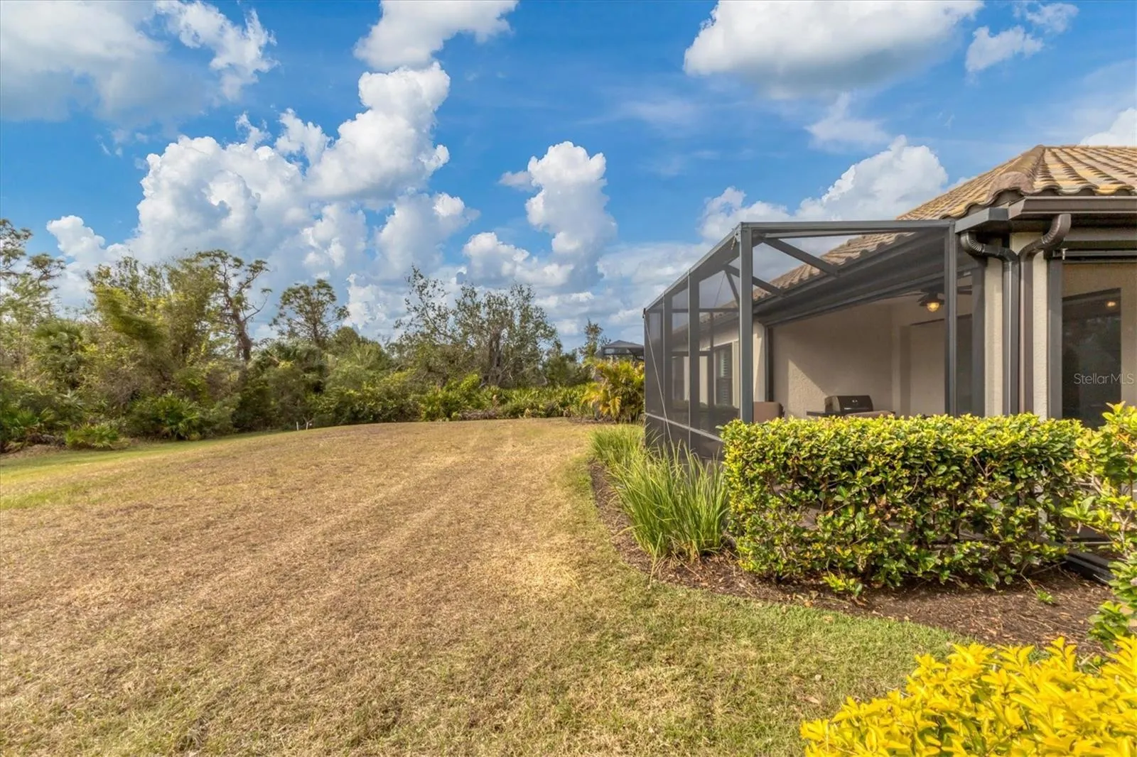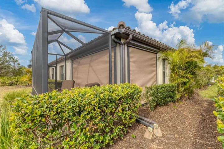 Paradise found! This is the home you’ve been searching for! This stunning three-bedroom plus den, two-bath Sandcastle floor plan villa in desirable Boca Royale is move-in ready with no need to wait for new construction. On a serene dead-end street, this property boasts an ultra-private lot. As you approach, you’ll find a welcoming recessed front porch leading to a secluded screened entryway. Step inside to a spacious foyer that provides a lovely view of your private backyard. The well-appointed kitchen features upgraded white cabinetry and a gas stove, ideal for entertaining with its open concept layout flowing into the dining area and great room. Both guest bedrooms are at the front of the home, while a generous office/den with a double-door entry sits conveniently next to the dining space. The laundry room is discreetly behind the kitchen, and the primary bedroom and bath are at the back for maximum privacy. The primary bath features dual vanities, a large walk-in shower, a private water closet and an expansive walk-in closet. This home is enhanced with crown molding throughout, plantation shutters on every window, accordion hurricane shutters for storm protection and an electric roll-down hurricane curtain on the lanai. For added peace of mind, a whole-house generator is also included. Boca Royale is a gated community with optional golf and tennis memberships, conveniently near the beautiful beaches, charming shops and restaurants of Dearborn Street, and just a short drive to historic downtown Venice and more picturesque beaches.
