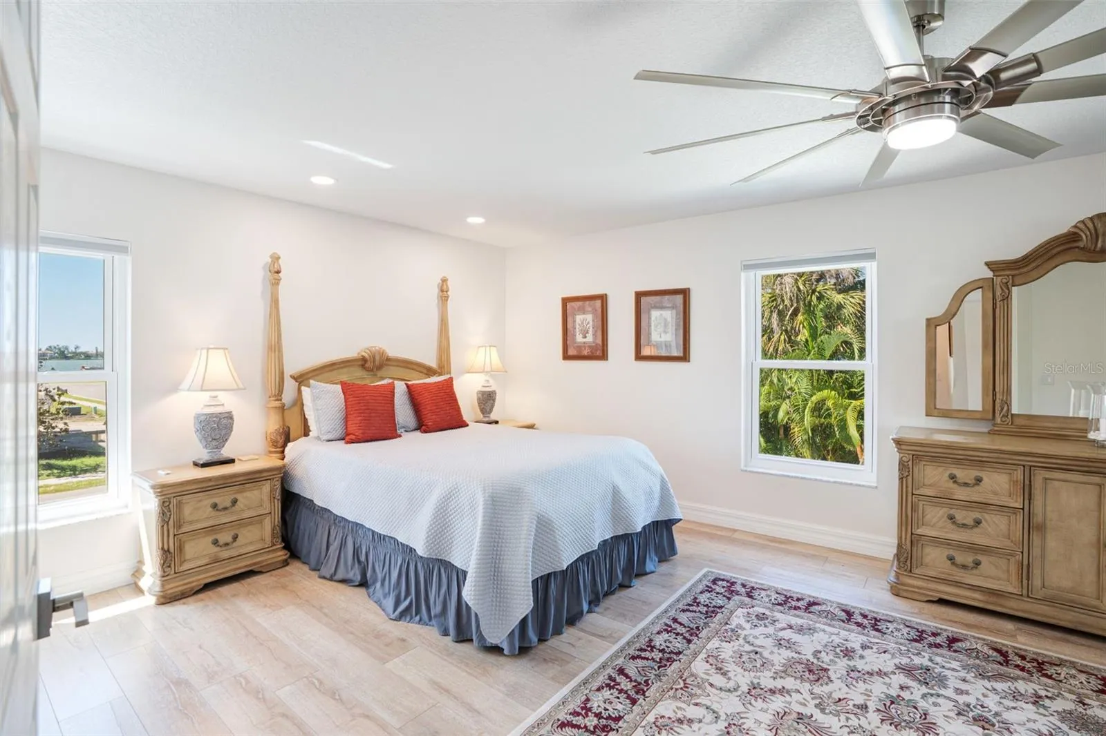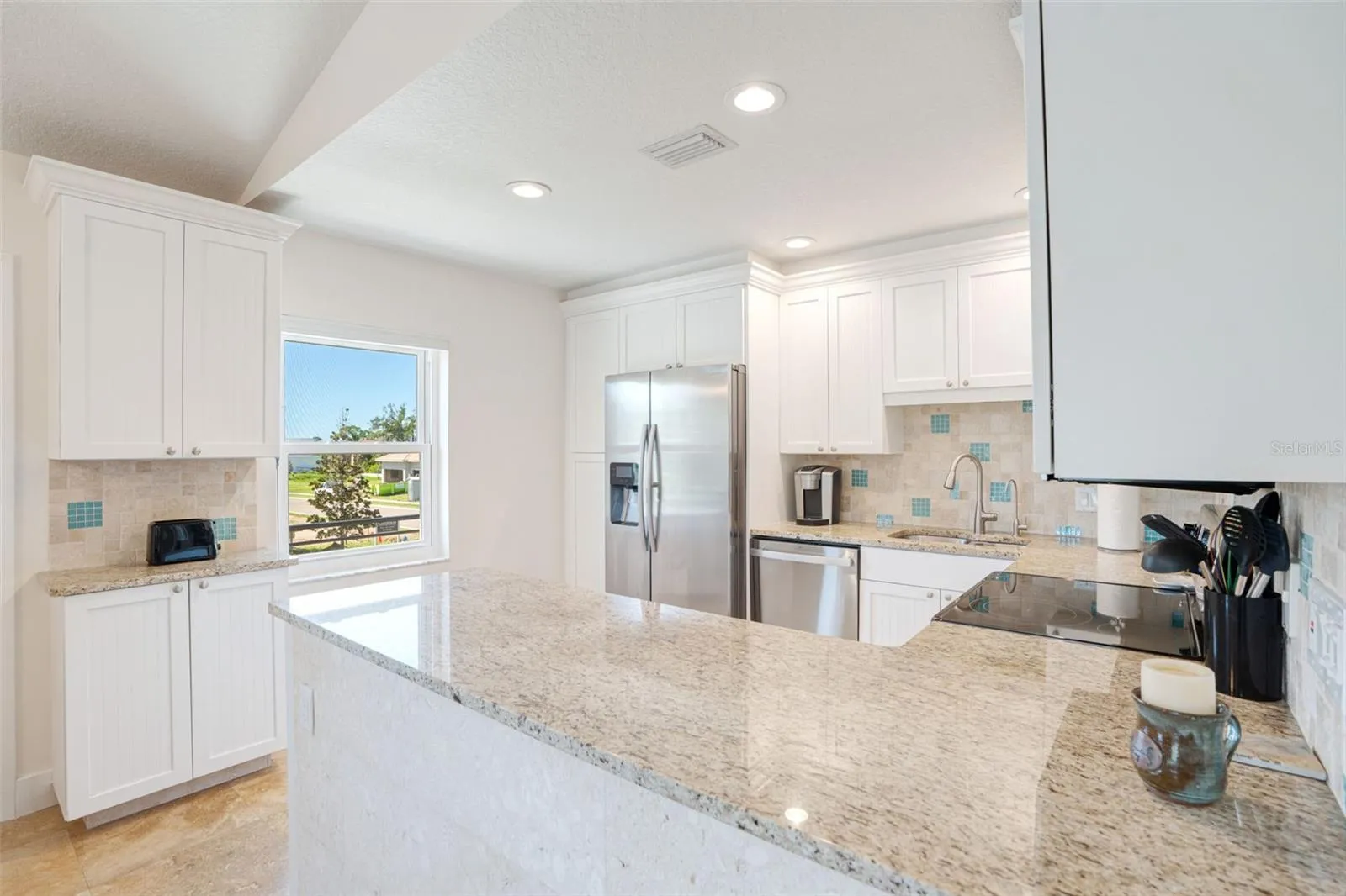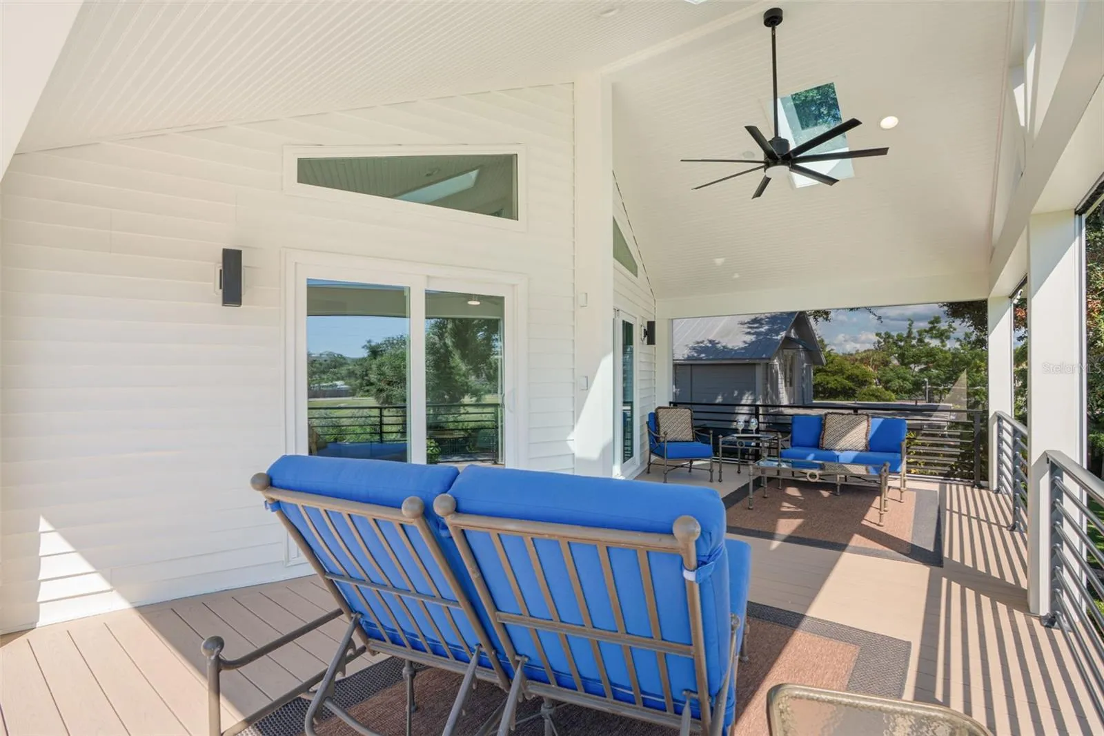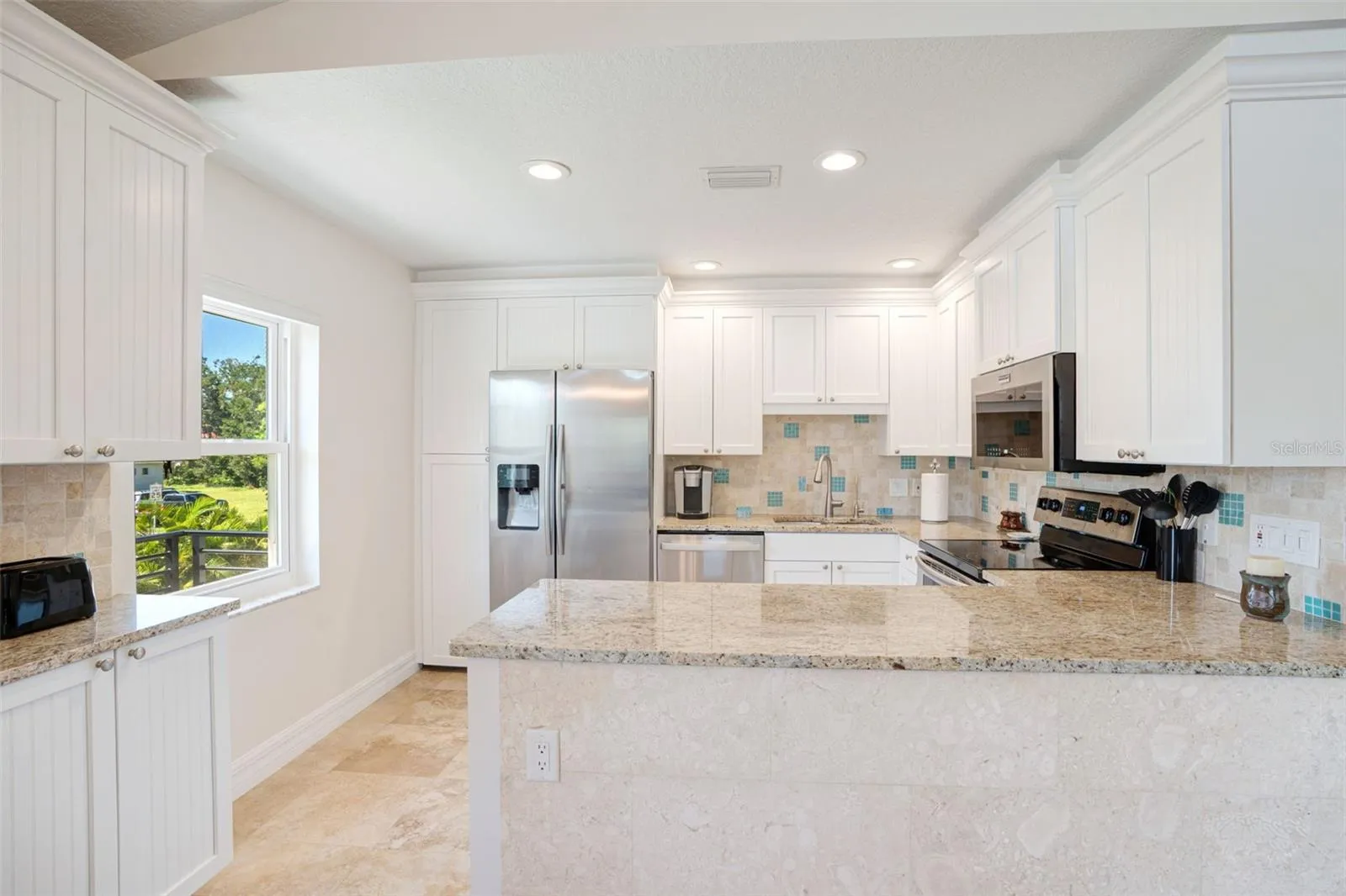 Live like you’re on vacation in this updated Key West–style home West of the Trail. Upgrades include a new standing seam metal roof, hurricane impact windows, electric tankless water heater, wraparound “Lifeproof” composite decking, and a custom heated pool. Interior features vaulted ceilings with a mix of travertine, LVP, and tile flooring, plus a kitchen with solid wood cabinets, stainless steel appliances, beadboard ceiling, and custom backsplash. The screened second-story porch has an electronic roll-up system for open-air or enclosed comfort. A unique “hidden” door design allows the home to function as one residence or two separate units, with the lower level offering its own entrance, bedroom, bath, family room, and laundry—perfect for in-laws, guests, or rental income. Outdoors, enjoy lush landscaping, a tropical pool setting, and unbeatable location just a block from the public dock and kayak launch. Minutes to Sarasota, Venice Island, beaches, Legacy Trail, and Spanish Pointe.