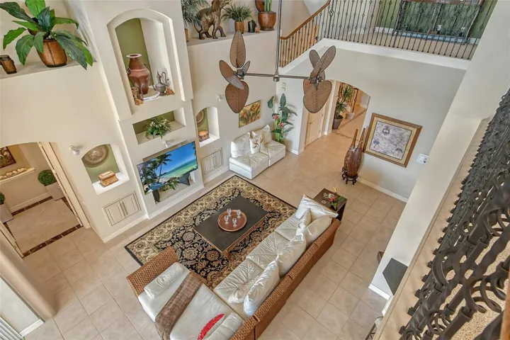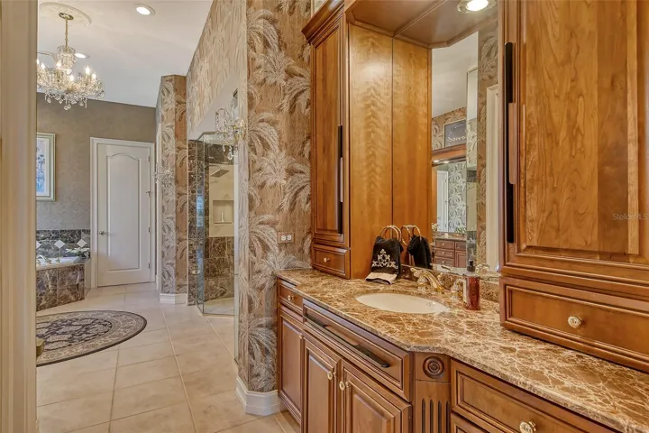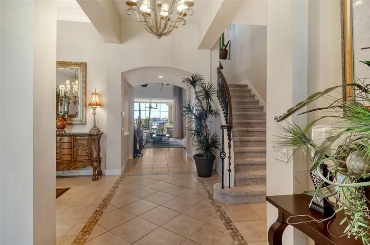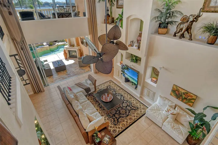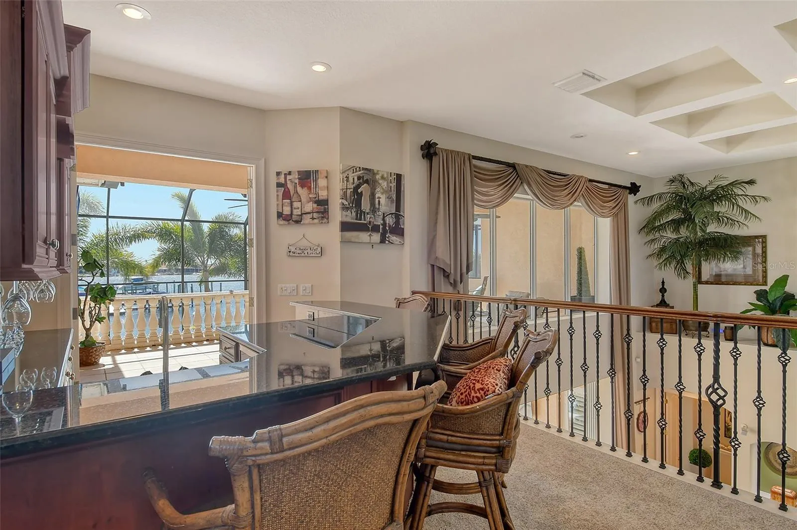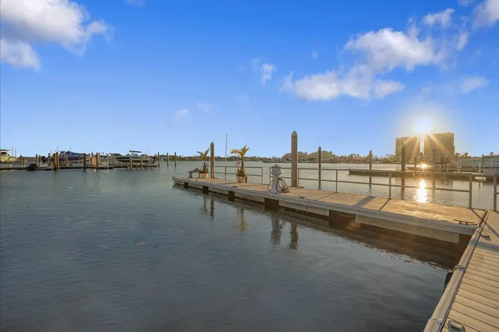 Welcome to Casa de Avrille. Nestled within the exclusive gated confines of Riviera Dunes, this residence stands as a testament to luxury and beckons to those who appreciate the finer things in life. Upon crossing the threshold, one is immediately mesmerized by the allure of high ceilings, luxury appointments, a stunning dining room and a view of their yacht in the expansive basin beyond. The living and dining spaces flow effortlessly. A butler’s pantry flanks the entrance to the kitchen, where culinary delights await. Equipped with a generous working counter and a suite of gourmet appliances, the kitchen and family room provide an open and inviting space for relaxation with family and friends. Adorning the family room, a wall of sliding glass doors stands as a gateway to an outdoor oasis, inviting guests to step outside and indulge in the splendor of the stunning pool patio. One is surrounded by the ambiance of tropical splendor as Southern exposure provides golden sunrises and sunsets. A full outdoor kitchen and gas fireplace are perfect for alfresco entertaining under the starlit sky. The primary ensuite is a sanctuary unto itself, with panoramic views of the pool and water. The lavish master bath offers another tranquil oasis complete with a soaking tub, oversized shower for two, wine and coffee bar, dual vanities and toilets. Also, on the first floor one will find a theater room, an ensuite bedroom and two additional bedrooms. Ascending the second floor reveals a spacious great room with a wet bar wrapped with a second-story patio that affords additional outdoor enjoyment. A second primary ensuite with picturesque water views completes the upper level, offering a retreat from the world below. Living is easy and secure with hurricane rated windows and doors, a whole house generator and tankless water heater. Situated along a hurricane shelter basin with deep water dockage and direct access to Tampa Bay, the Intercoastal Waterway and the Gulf, this property boasts an oversized dock primed for up to a 56-foot yacht. This community is centrally located with proximity to Tampa, St. Petersburg and Sarasota as well as the coveted beaches of Anna Maria Island. From its unparalleled location to its lavish amenities and meticulous attention to detail, this residence stands as a testament to luxurious waterfront living at its finest.