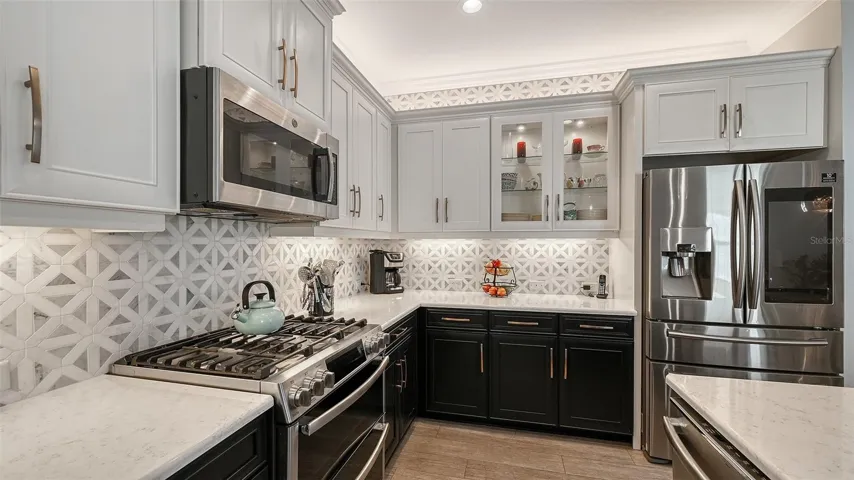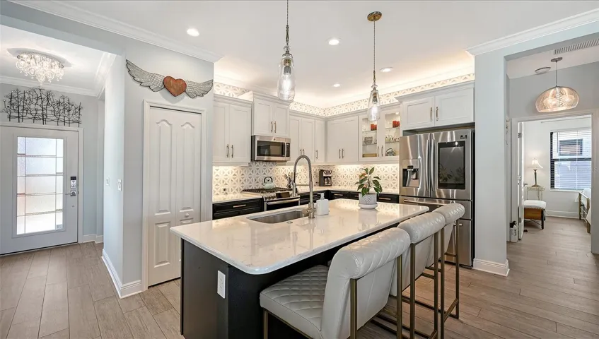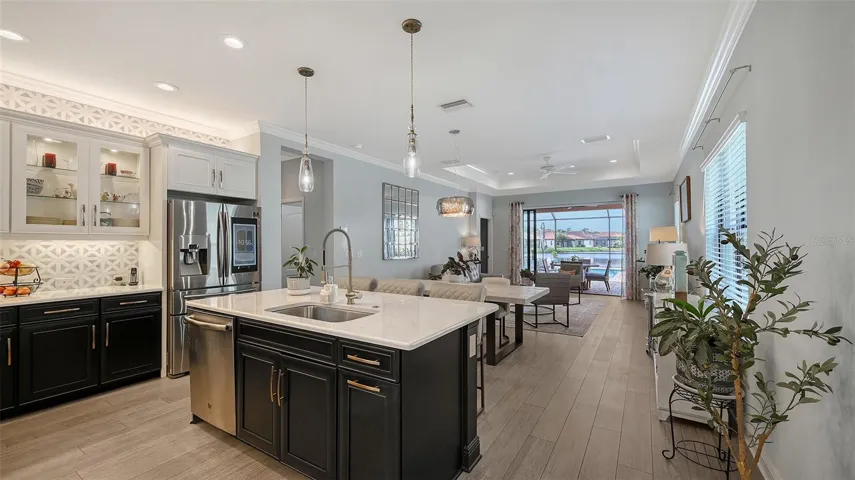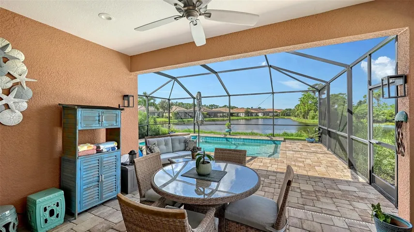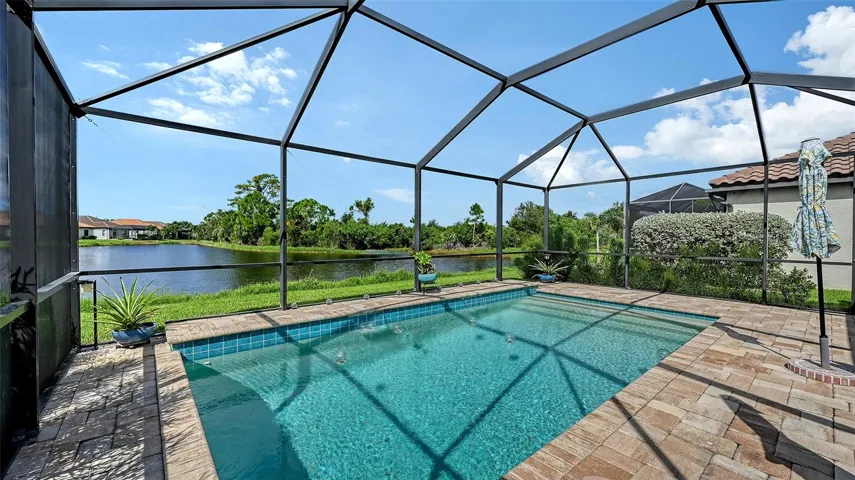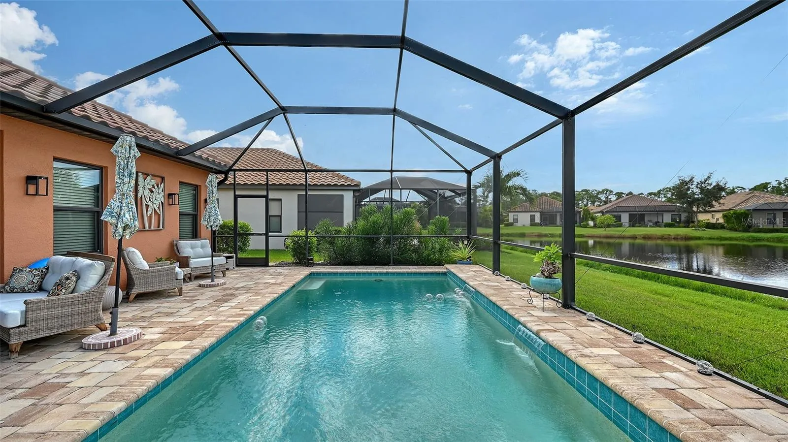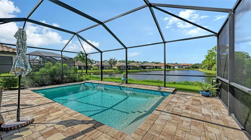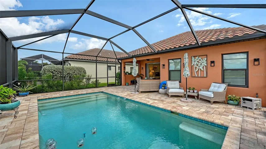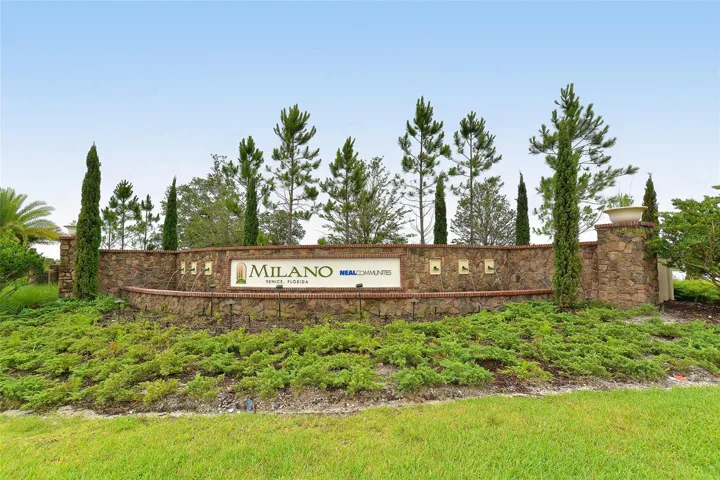 For the bathroom flooring the owner selected a timeless light mosaic marble in the second bath and large marble tiles for primary suite bathroom which completes the ‘professional designer appearance’ the home suggest. The attention to detail is clear. The home offers both natural gas and electric. The kitchen appliances were also upgraded when built along with quartz counter tops and lovely mosaic tiles that meet the beautiful crown molding in the kitchen. Enjoy the homes’ outdoor living space while reflexing around your own private saltwater pool. The outdoor has also been plumbed for an outdoor natural gas cooking if you want to install. Milano is a gated community with NO CDD fees and offers low HOA fees. Milano checks an amazing number of boxes when looking for the ideal Florida Lifestyle. Milano’s Clubhouse includes, a beautiful community pool, with spa, a fire pit, tennis and bocce courts and yes even a dog walk. Located close to I75 and east of the local Venice and Nokomis beaches and historic downtown Venice with quick access to Sarasota Memorial’s recently completed Venice Hospital.