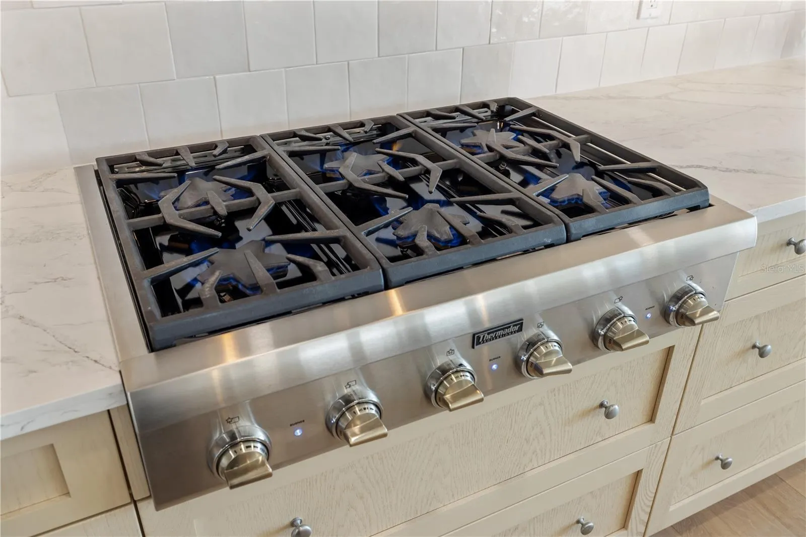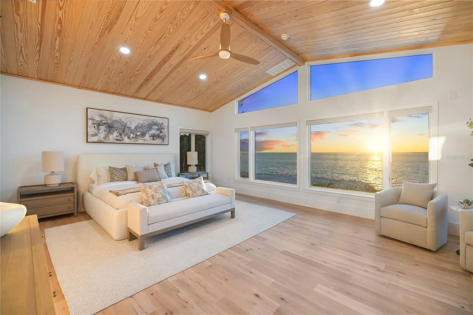 Wake up to the panoramic views of the Gulf of America and Sarasota Bay, that create a daily masterpiece of color and light, and have a coffee on the master bedroom’s private balcony. With 6 bedrooms, 5 full bathrooms, and 2 half baths, you can host more family and guests – along with the second living room/media room. All of the bedrooms have custom built-in closets, and the spacious ocean-view master bathroom leads to two spacious walk-in closets. The home features high-ceilings, beautiful hardwood flooring throughout, and cypress beams. The living and dining room area have a fireplace, and the open-floor plan leads out to another large balcony overlooking the ocean. Enjoy the gourmet custom kitchen with Thermador gas appliances, a walk-in pantry, and an extra large quartz island with seating.