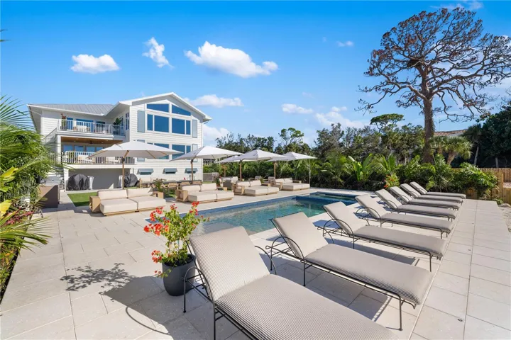 Experience private beachfront coastal luxury at this one-of-one Siesta Key home, thoughtfully curated for comfort, style, and entertainment – by Pham Development. Perfectly positioned off the Gulf, with gorgeous ocean views throughout the rooms – you can watch a world-class sunset view from your master bedroom. Spanning over 6,468 square feet under air and 9,080 total square feet, this exquisite residence captures the essence of resort-style waterfront living on more than half an acre of pristine Gulf-front land. Be at ease with a surrounding elevated riprap shoreline and the imported rocks, offering both protection and privacy.