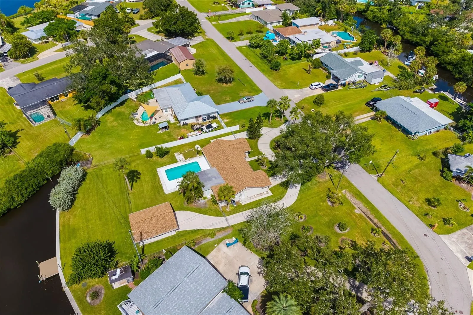 Waterfront, dock, one curve and you are in the Manatee River on the way to the Gulf of America. Highland Shores is a boating community so if you don’t want to keep the boat in the water, you can always trailer the boat to the water at the community boat dock This .47 of an acre home has 4 bedrooms, 2 baths, a living/dining room a family room, a new kitchen and all new appliances;the windows have been replaced with hurricane windows. Speaking of windows, this home lets in the sunlight. Yes the winds of Milton came and there is a new roof on both the garage/workshop and home. There are two water heaters, one on each side of the home. There is a separate garage which would make a great office/garage – why pay for an office for your company when it can be moments from your boat. there is even a sea wall and dock with water and electric. You have always wanted to live on the water – here it is, no CDD, NO HOA, walk out the back door and I can hear the fish waiting for you. If you just want to relax there is the open pool. There is still room for a good game of crocquet? foot ball, tag Take a look and fall in love