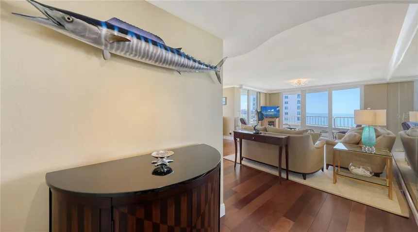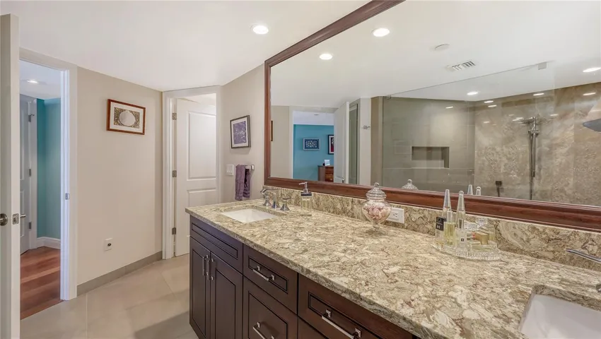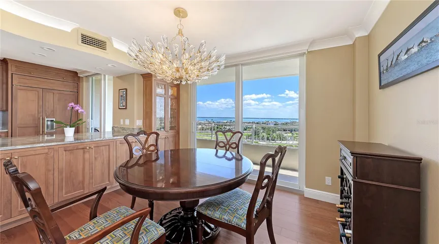 From a morning stroll on the beach to twilight cocktails on your wrap around balcony watching the glittering lights of Sarasota over the bay, you will experience beauty all around. Longboat Key, a jewel in the crown of the Sarasota Coastline, has so much to share. This elegantly appointed home will not disappoint. Custom finishes are abundant throughout the 1,842 sq ft condominium, not to mention the breath-taking views from the over 300 sq ft wrap-around balcony. This gracious home offers generous living space, with sweeping views from every window. Upon entering 807, you are greeted to stunning engineered Brazilian Cherry Hardwood flooring that continues throughout the home. A Reme Halo Air Purification System keeps the air fresh and clean. All windows and sliders are Impact. Beautiful crown molding throughout. The custom kitchen created by Campbell’s Cabinetry, Quartzite countertops, SubZero 42” Side by Side Refrigerator Freezer, Wolf Steam Convection Oven, GE Monogram Induction Cooktop, Zephyr PISA range hood. Dosch Dishwasher, Blankco Silgranite Sink, Hansgrohe Faucet. Custom cabinetry can be found throughout this beautiful residence. Primary Bedroom Suite offers views, comfort and luxury. Two bedrooms, each with well-designed baths, custom touches are found everywhere. There is one assigned parking space assigned to the unit on the upper level, and there is ample parking on the lower level for your second vehicle.