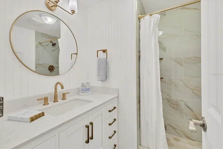 The kitchen is a showstopper, featuring quartz countertops, custom soft-close cabinetry, a beadboard backsplash, shiplap accents, island storage, and new sink and faucets. Corelux vinyl plank flooring and 2″ blinds run throughout the home for a seamless, modern look. The primary bathroom features a custom tile shower for a spa-like experience. Step outside to your private outdoor oasis—complete with a screened lanai, open patio, and covered porch—all surrounded by majestic oaks and palms. The extended carport adds 4 extra feet of convenience. Best of all, you can fish for bass right from your backyard! Low HOA of only $600 annually. Pets are not permitted. Plenty of activities to keep you busy in this community. Updated fitness room. Meet friends and make new ones for a game of indoor pickle ball, bocce ball, shuffleboard or take a water aerobics class. Join the Golf League. Take a bike or golf cart ride to Veterans’ Park to watch the wildlife and sunset. Ellenton Premium Outlet Mall, restaurants, and medical facility’s just minutes away. Easy access to I-75. Just a short drive to our beautiful Gulf Beaches. Tidevue Estates offers a vibrant lifestyle with no lot rent and a strong sense of community. This is Florida living at its finest!
