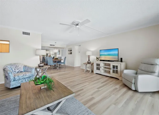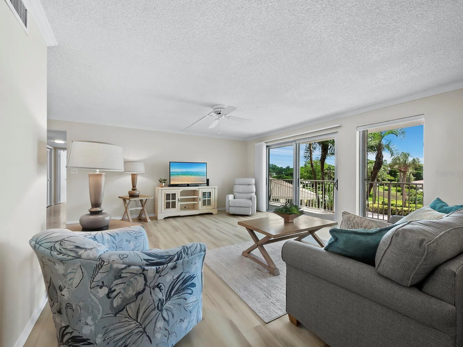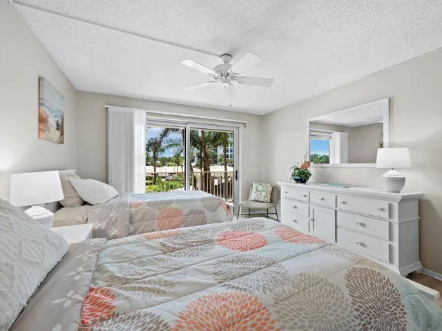 This inviting residence at the Islander Club of Longboat Key offers a peaceful retreat with beautiful views of the landscaped grounds. Spanning 1,235 sq ft, the home features two bedrooms, two full bathrooms, and an open floor plan that provides a comfortable space for both living and entertaining. The spacious kitchen and dining area offer plenty of room for cooking and gathering, with ample cabinetry and an open flow that makes the space perfect for hosting. The 38-foot private balcony, accessible from both the living room and bedrooms, offers a tranquil spot to enjoy the coastal breeze and the surrounding scenery. The primary suite serves as a peaceful retreat with an en-suite bathroom and a walk-in closet, while the guest bedroom, located next to the second full bathroom, ensures comfort and privacy. Additional features include a private covered parking space and secure storage. Situated in the heart of Longboat Key, this residence is conveniently located near waterfront dining, shopping, golf, and a short drive to St. Armands Circle and downtown Sarasota. The Islander Club offers a range of resort-style amenities, including 800 feet of private beach frontage, two Har-Tru tennis courts, a renovated community room with a full kitchen, billiards, table tennis, a library, fitness center and a heated pool. This is a wonderful opportunity to enjoy Longboat Key living in a residence that provides both comfort and ample space.
